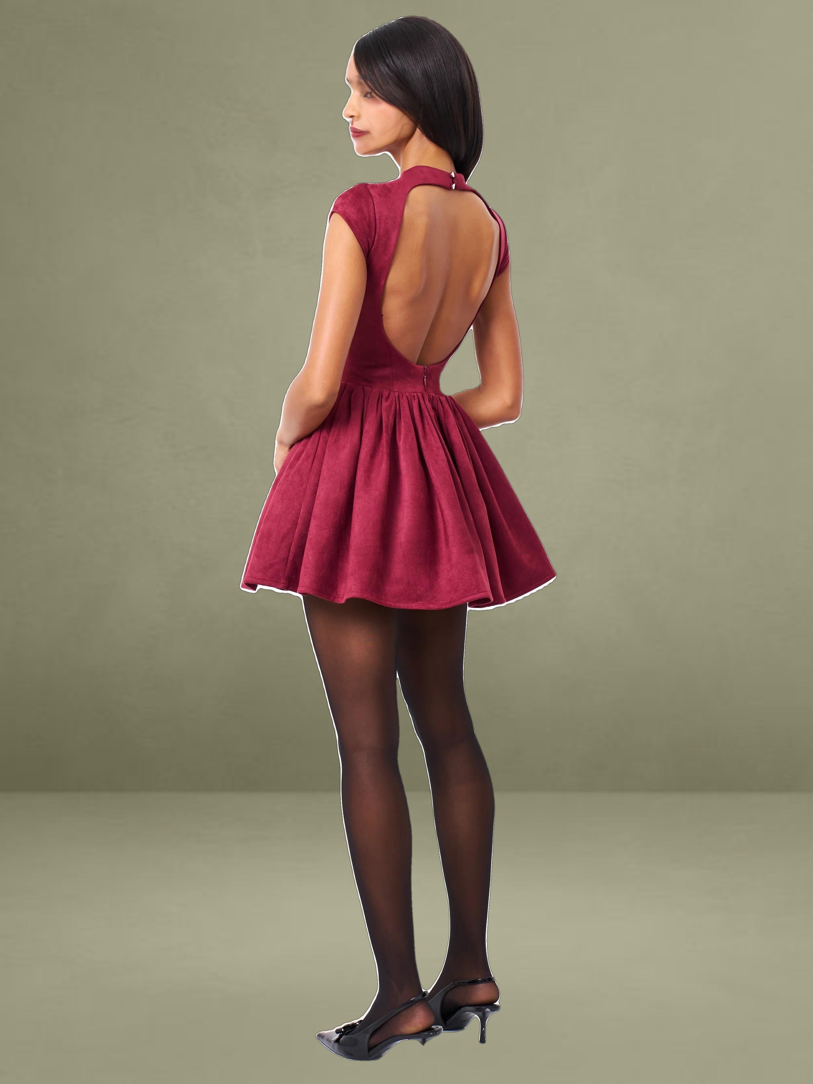Made from stretch crepe, this mini dress is a remarkable and bold piece that is sure to draw attention. It has elegant cap sleeves and a sophisticated turtleneck, achieving a perfect balance between playfulness and refinement. The dress features a daring print that conveys confidence and energy. The V-shaped waistline enhances your figure, and the fully lined interior and skirt support ensure comfort and structure all day or night. A discreet invisible zipper at the back maintains a sleek silhouette, while the puffy skirt adds a flirty and voluminous element to the overall look. It is also available in Black and Another Print.