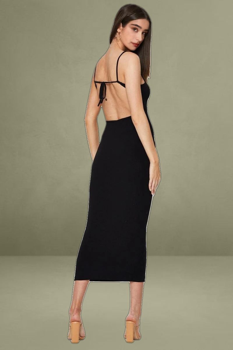 Features: Tie Up Back, Midi Length, Ribbed Material, Stretch Fabric