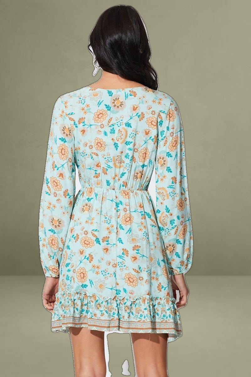 Features: Frill Hem, Elasticised Waist, Elasticised Wrists, Boho Print