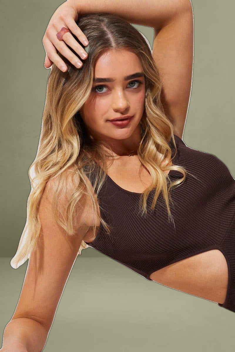 Features: Cut Out Detail, Ribbed Fabric, Midi Length, Fitted