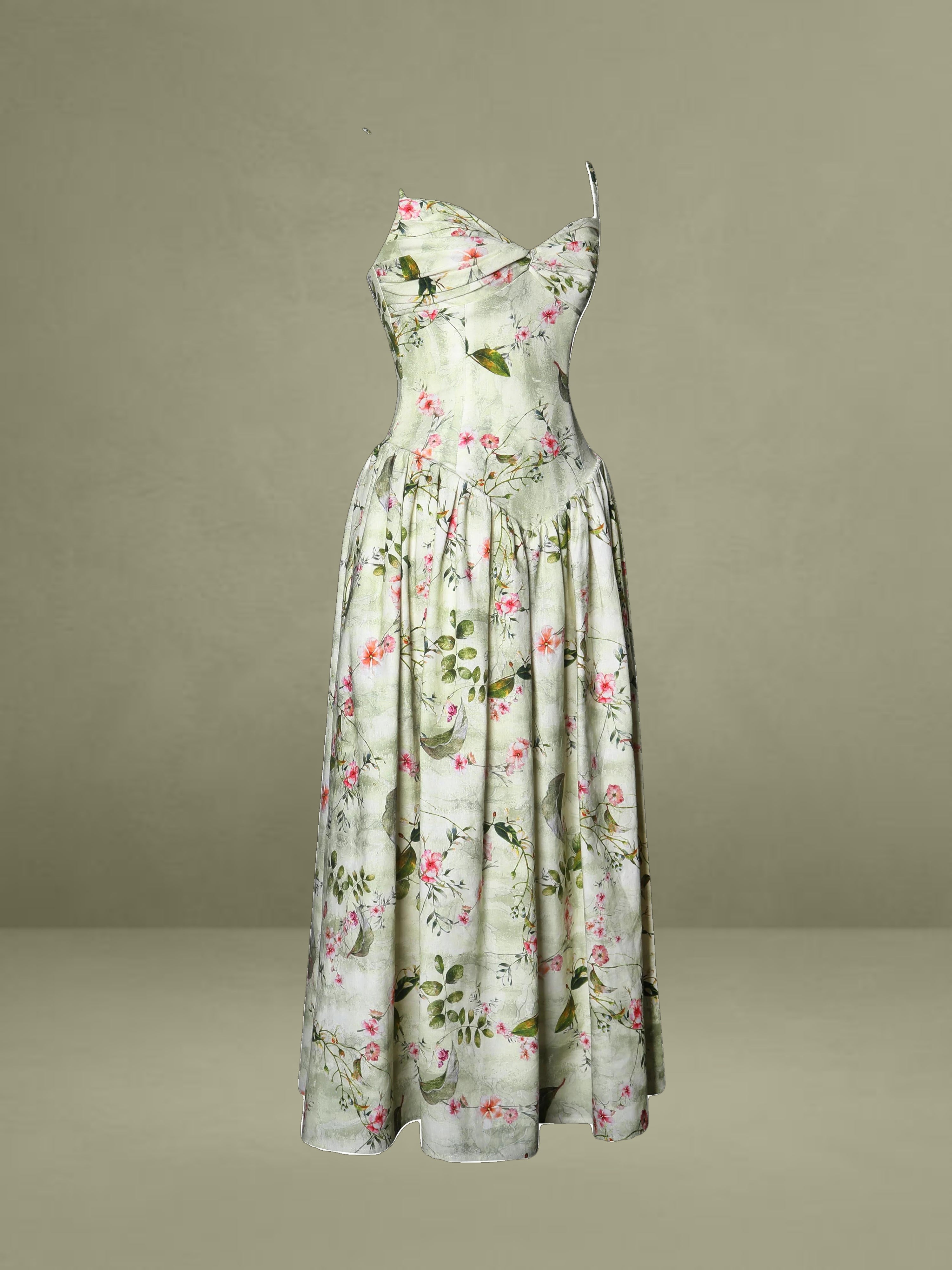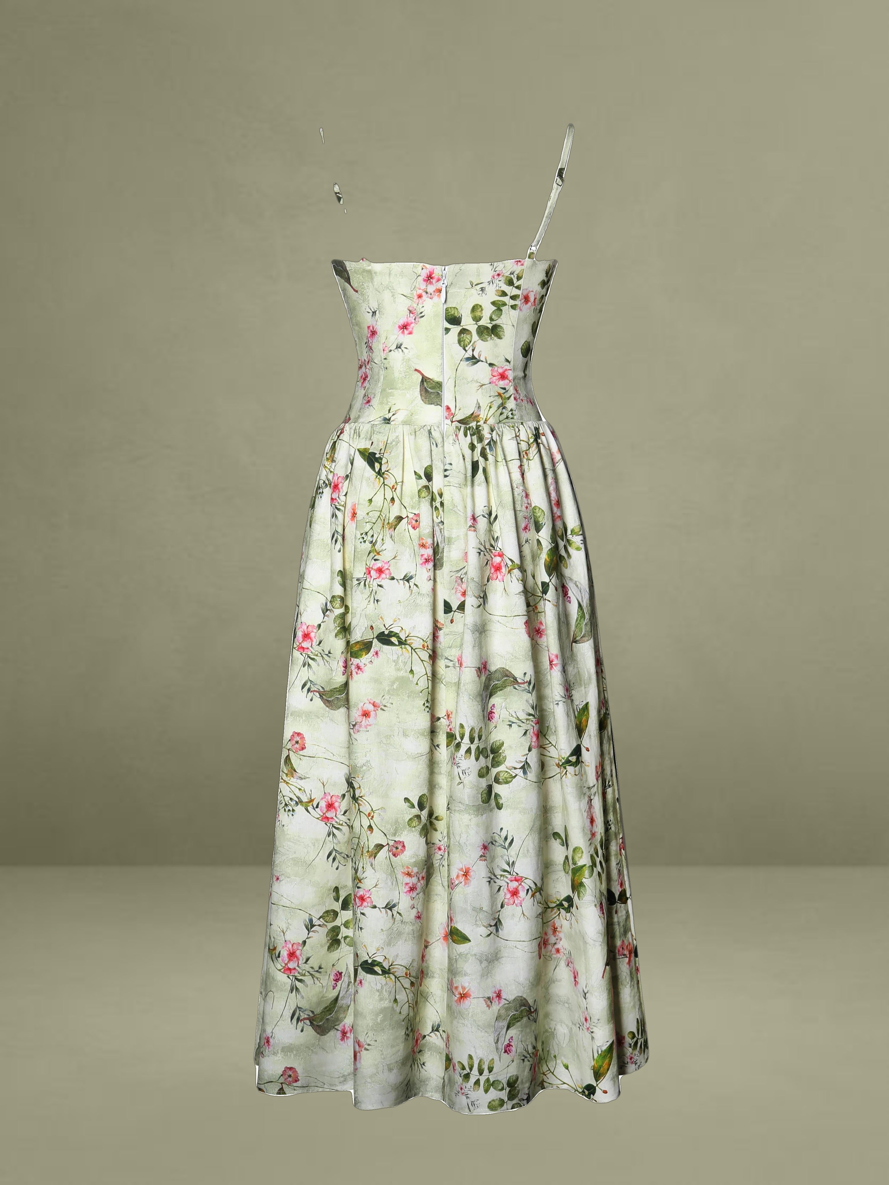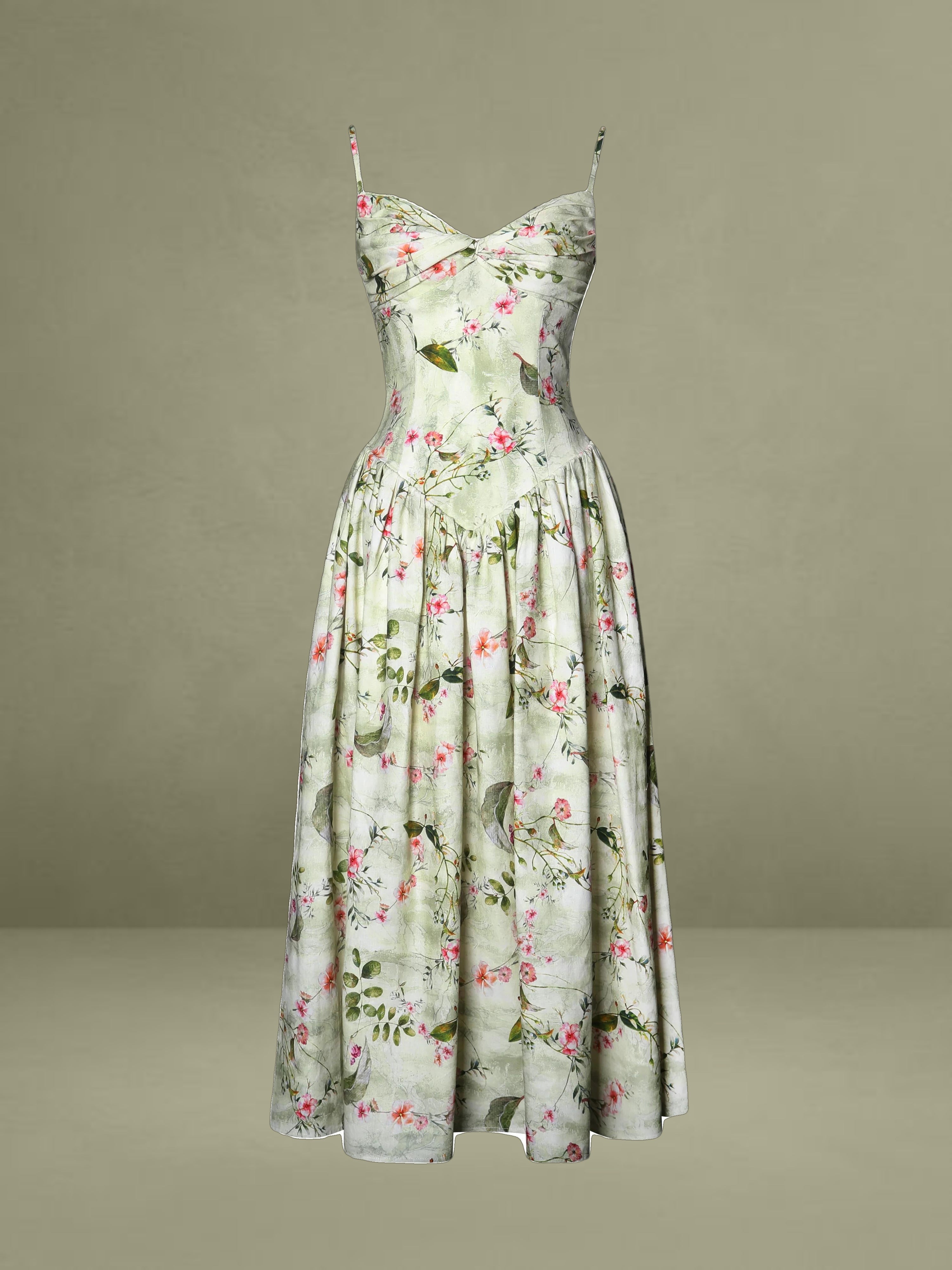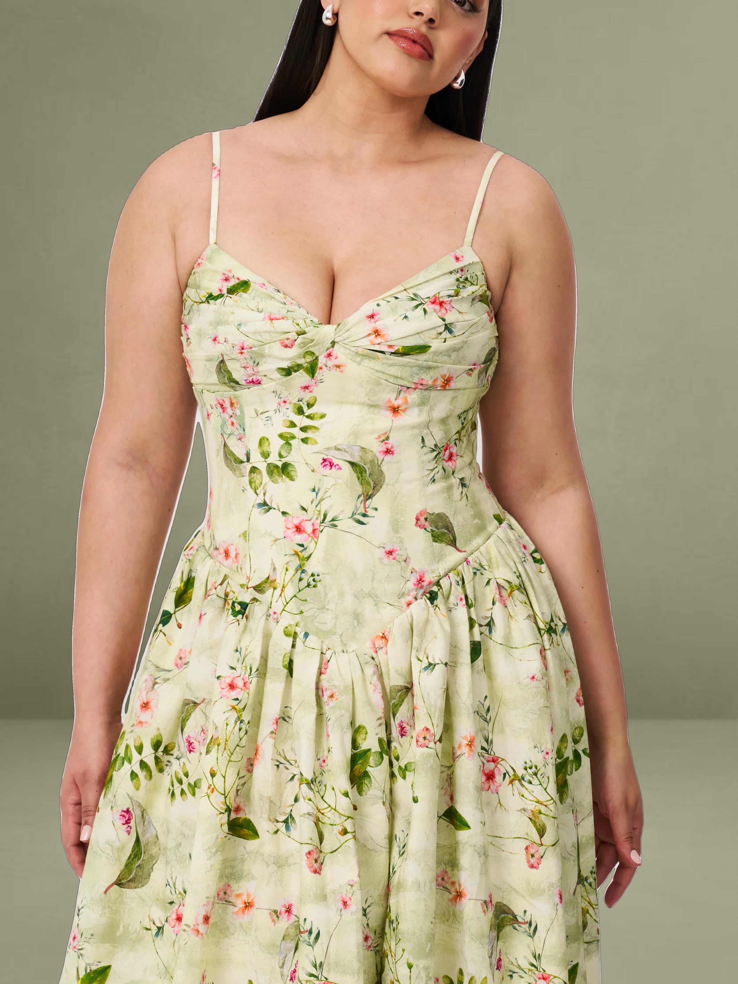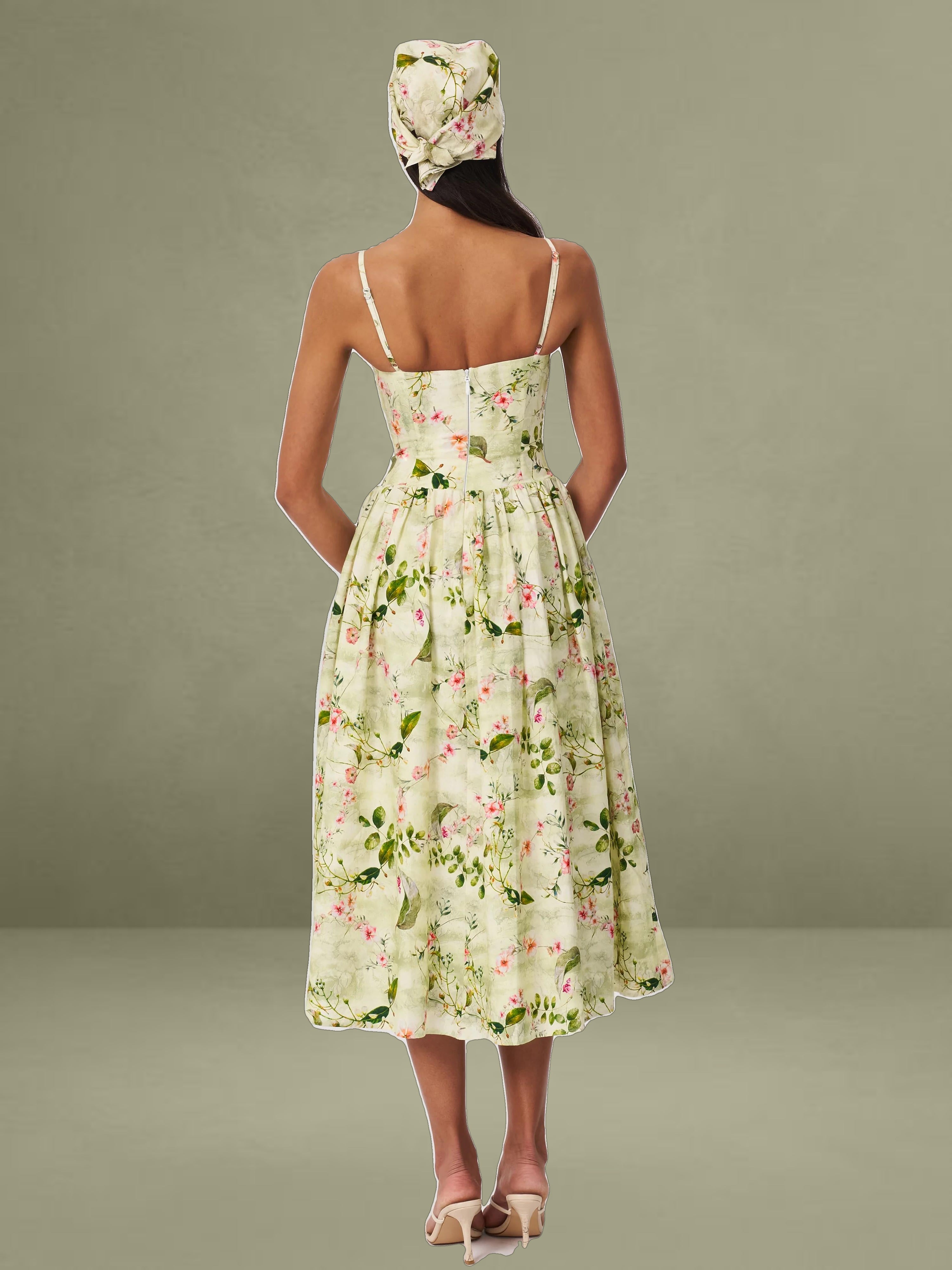 The Jacinda Dress is the perfect blend of springtime charm and effortless elegance, making it an ideal choice for picnics, vacations, holidays, and casual outings. Crafted from breathable linen fabric in a green floral print, this dress embodies a fresh and feminine aesthetic. The ruched front adds delicate texture and enhances the silhouette, while the drop waist design creates a relaxed yet flattering fit. Designed for both style and functionality, it features an invisible zipper and invisible pockets for a seamless look. Fully lined for comfort, the Jacinda Dress is your go-to piece for a breezy and stylish spring wardrobe. Perfectly matches with our Green Floral Print Head Scarf.