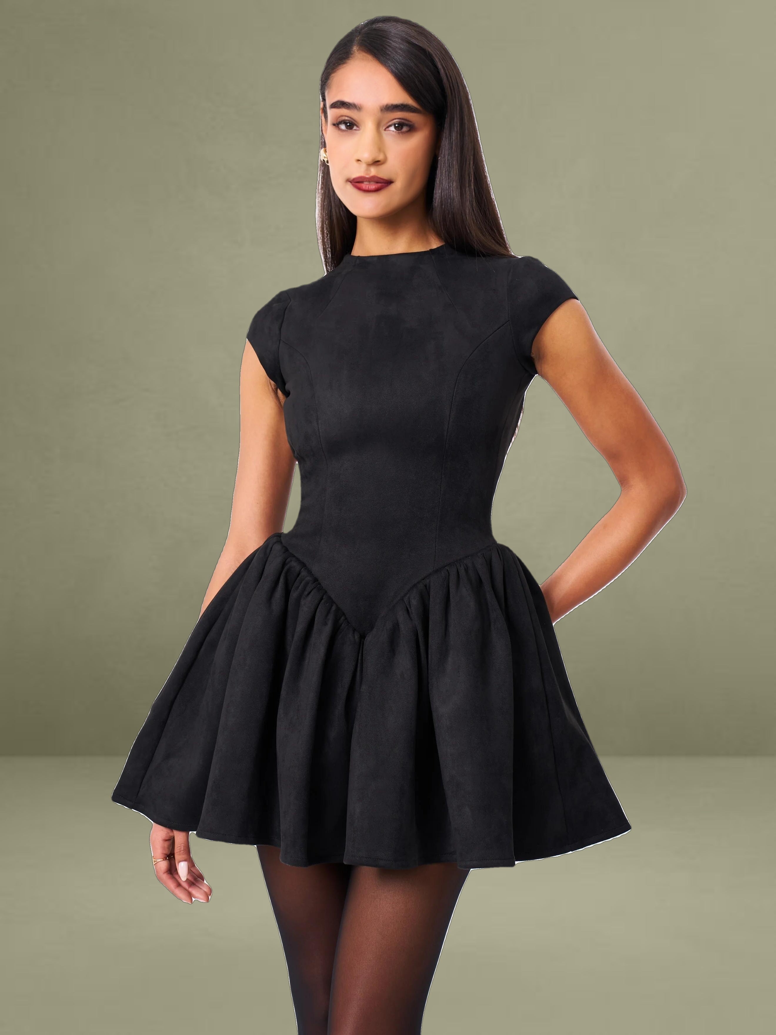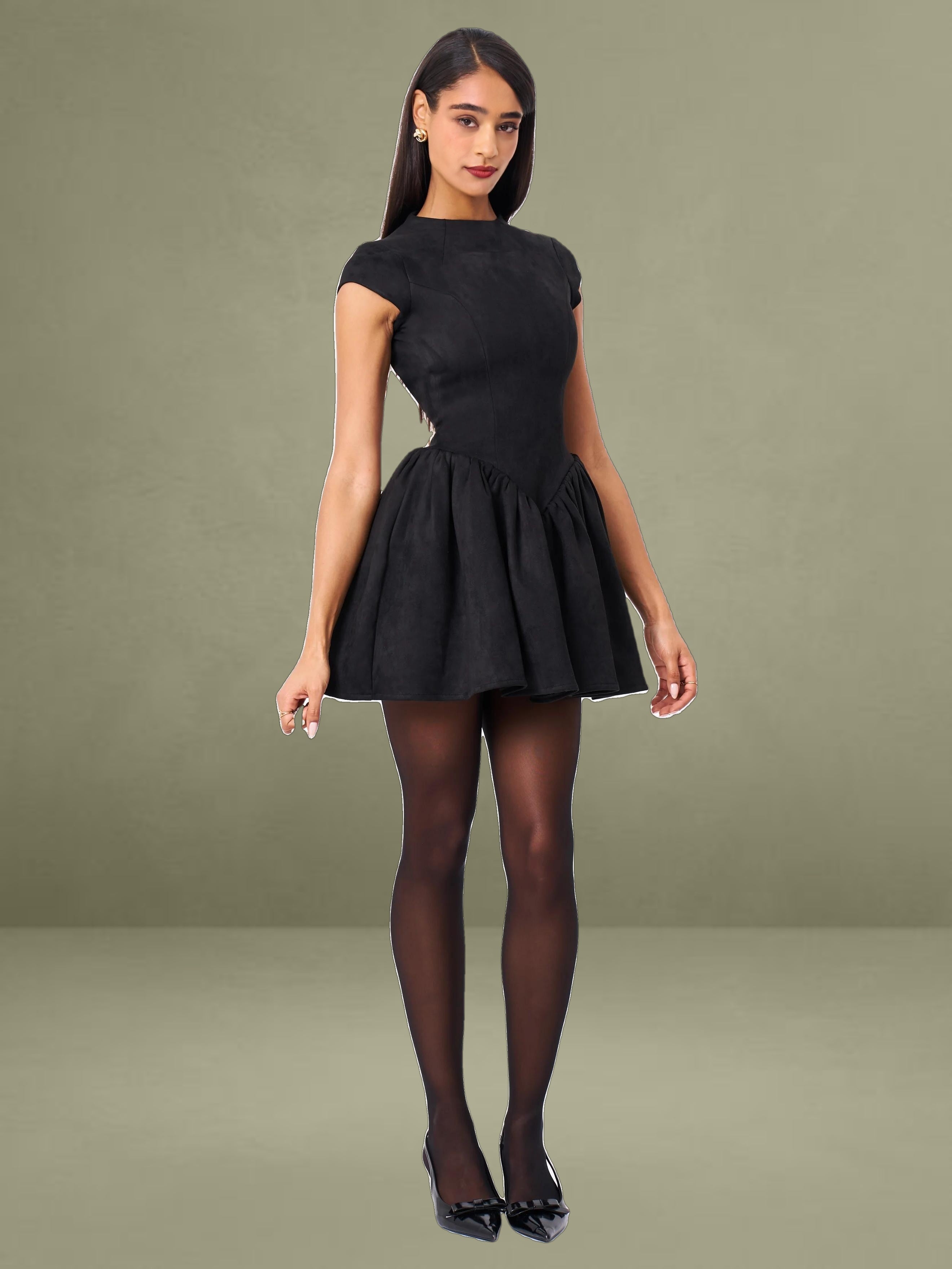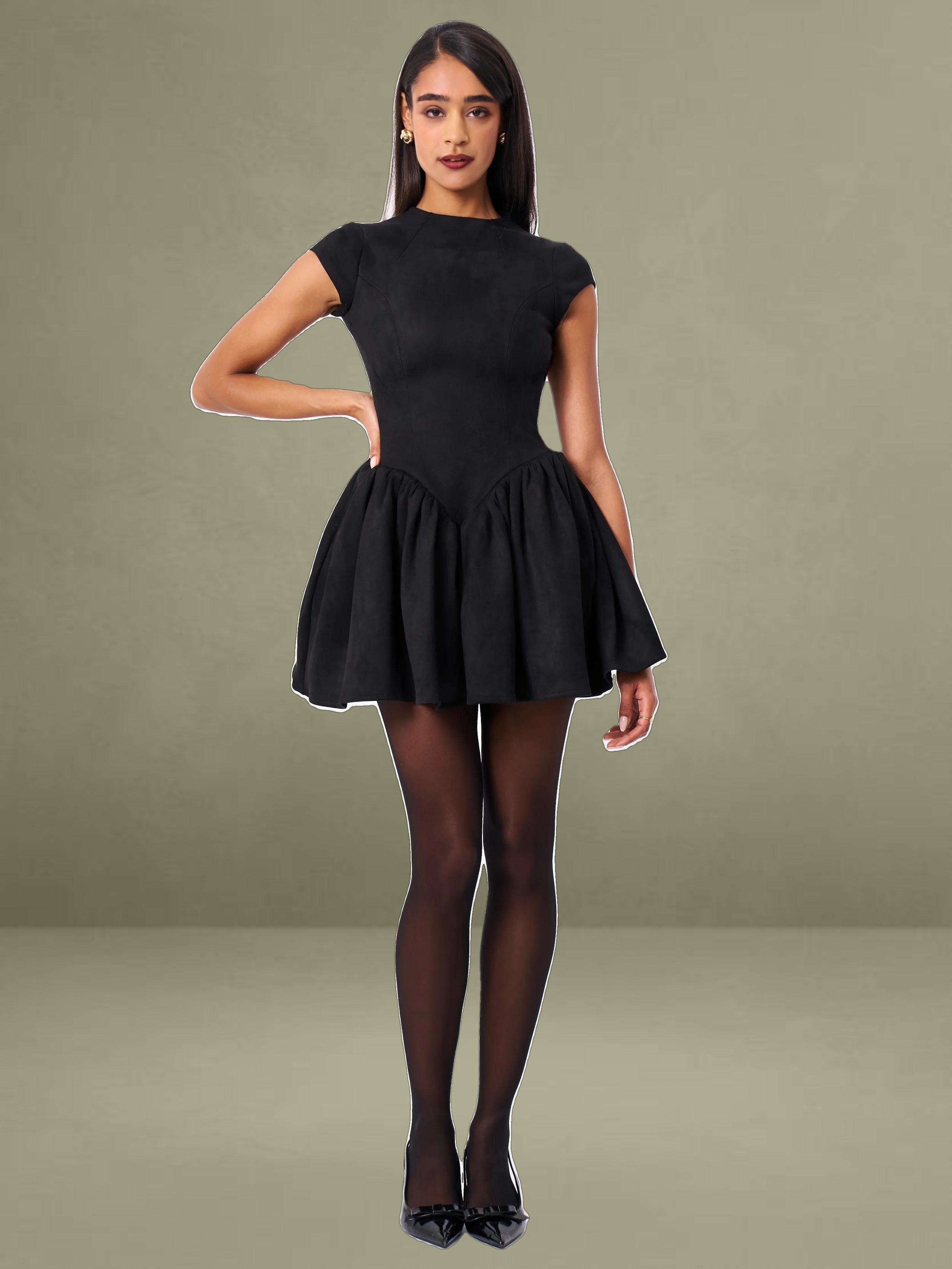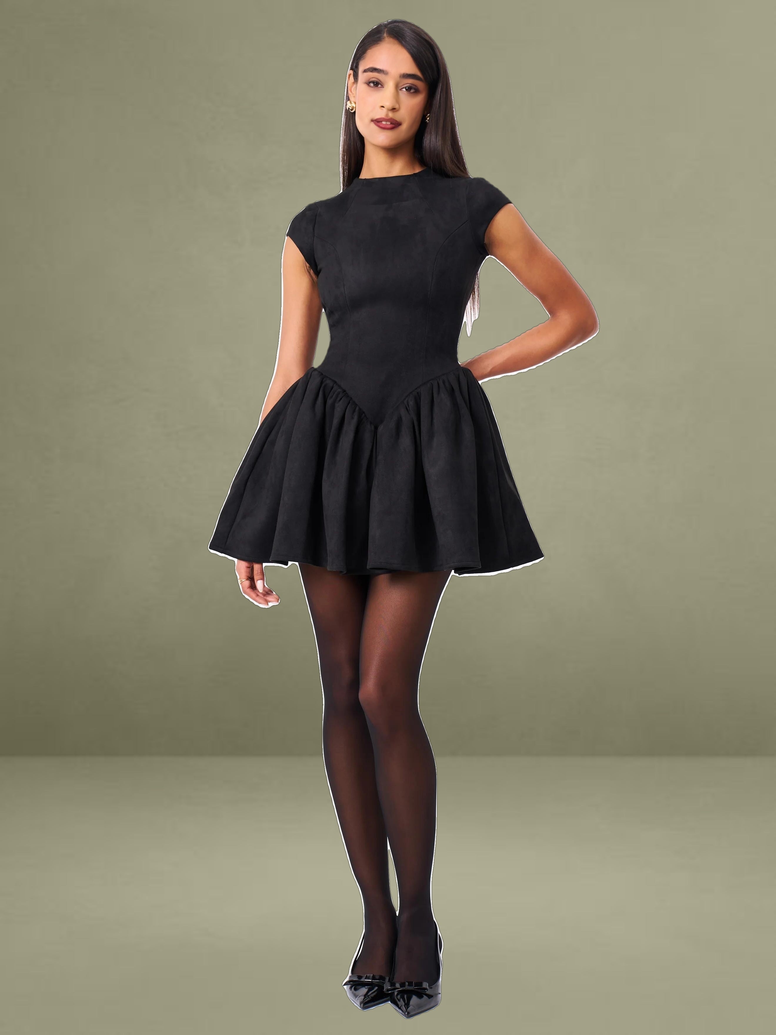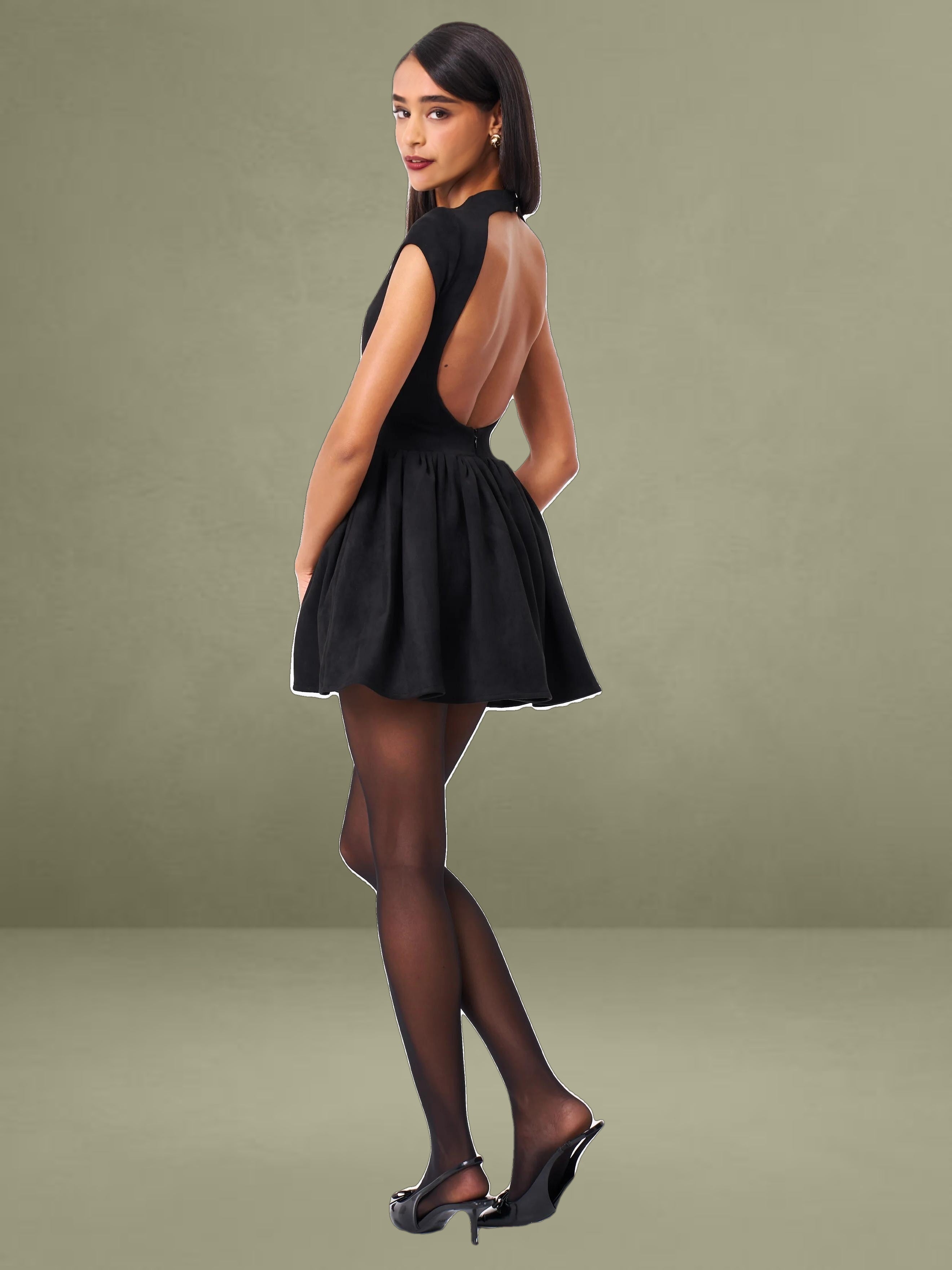 Crafted with stretch crepe, the Jacqueline mini dress is a stunning, bold statement piece designed to captivate attention. This backless mini dress features elegant cap sleeves and a sophisticated turtleneck neckline, creating a striking balance between playful and refined. The dress showcases a daring cheetah print that exudes confidence and energy. The V-shaped waistline flatters your figure, while the fully lined interior and inside skirt support ensure comfort and structure throughout the day or night. A discreet invisible zipper at the back maintains the sleek silhouette, while the puffy skirt adds a flirty, voluminous touch to the overall look. It is also available in Burgundy and Cheetah Print.