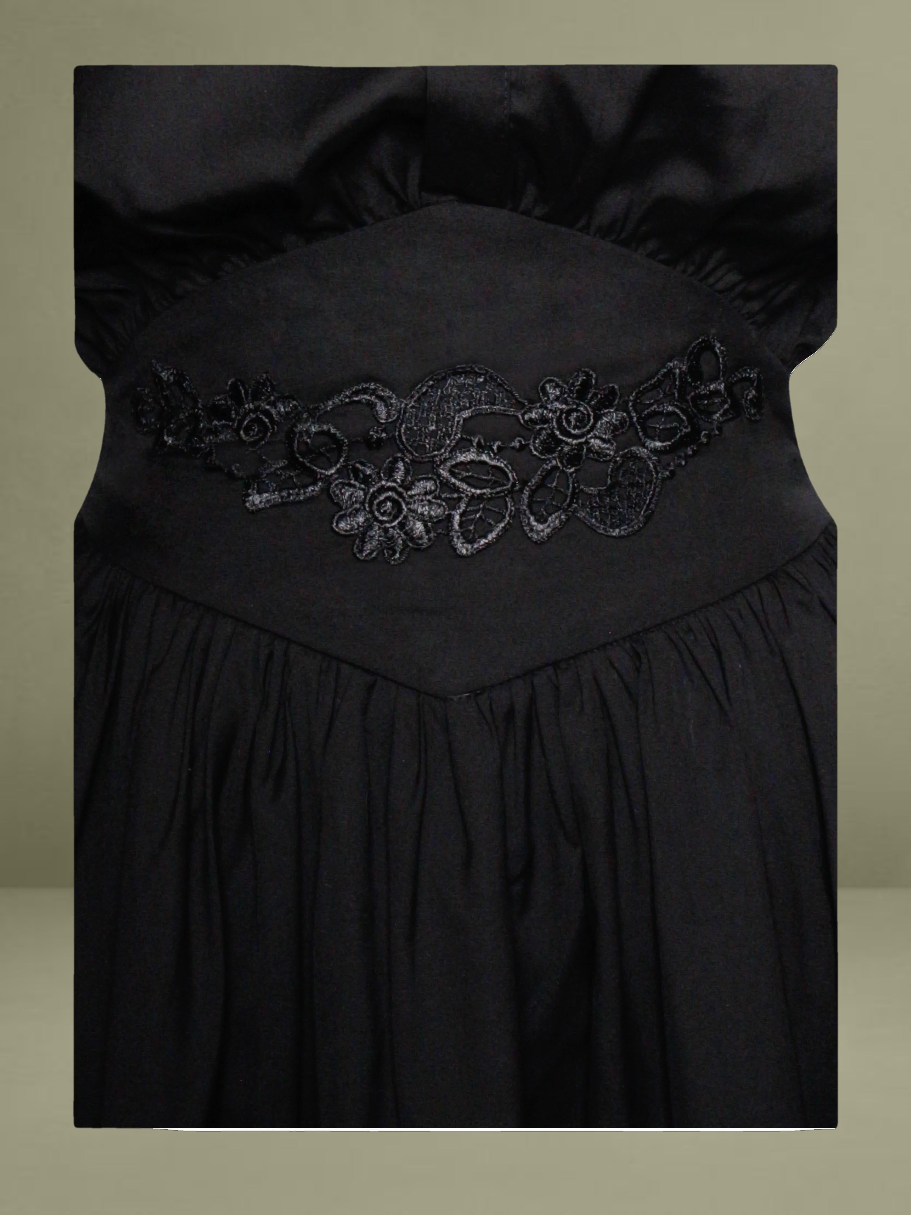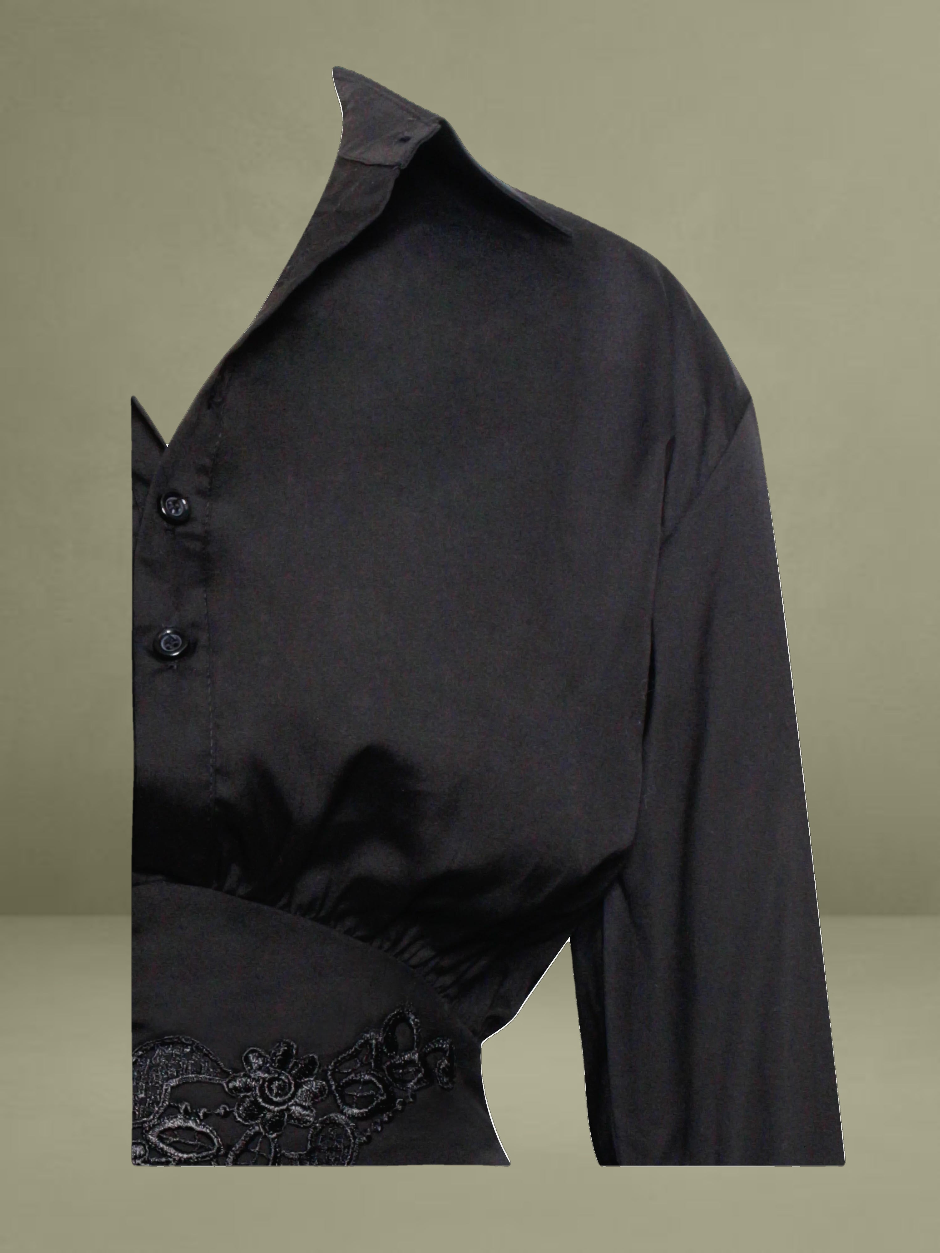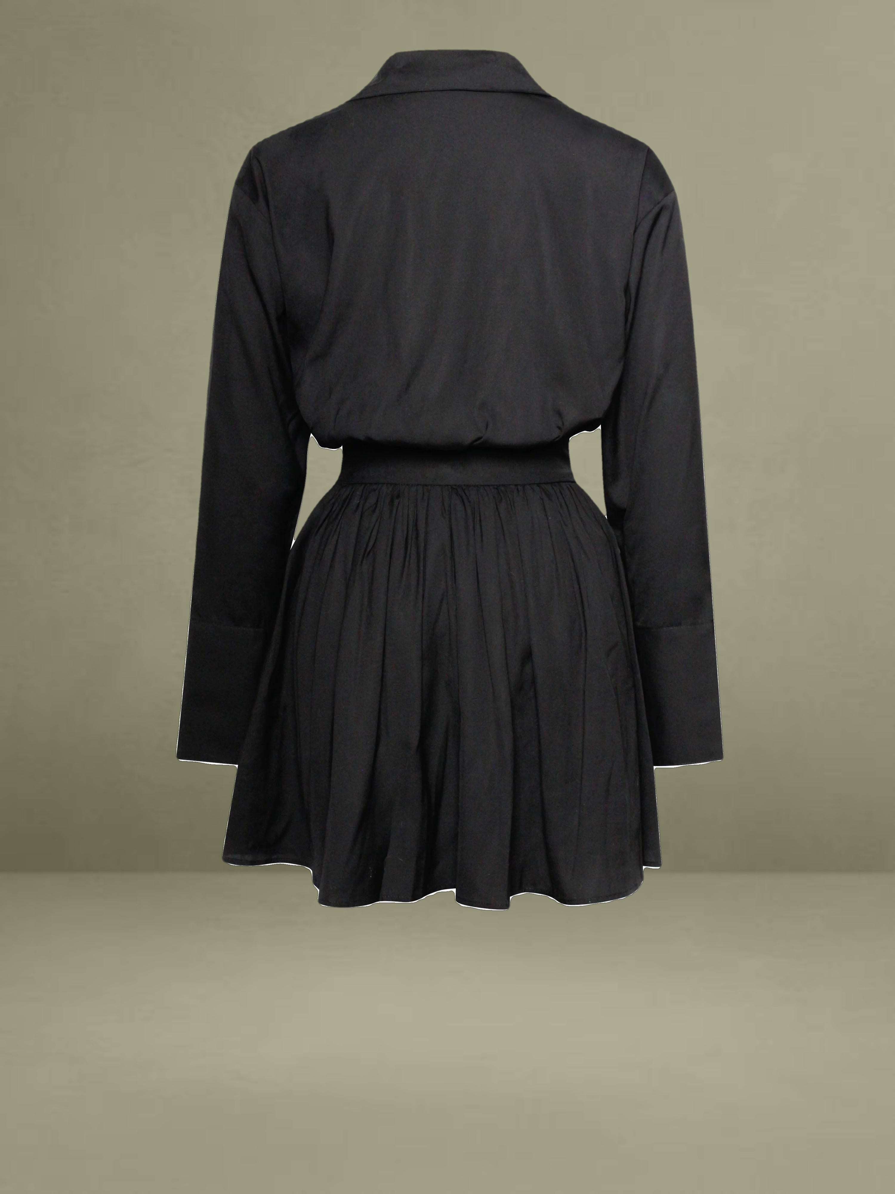 Introducing the Jamila dress, a stylish eco-luxe long-sleeve mini shirt dress designed for both comfort and elegance. The loose-fitting top features a sophisticated long cuff with three buttons, adding a refined touch. The corset waist, adorned with delicate lace decoration, creates a flattering silhouette and adds a hint of romance. An invisible side zipper ensures a seamless fit, enhancing the dress's sleek look. Perfect for any occasion, this dress combines casual charm with chic details, making it a versatile addition to your wardrobe. And it is also available in White.