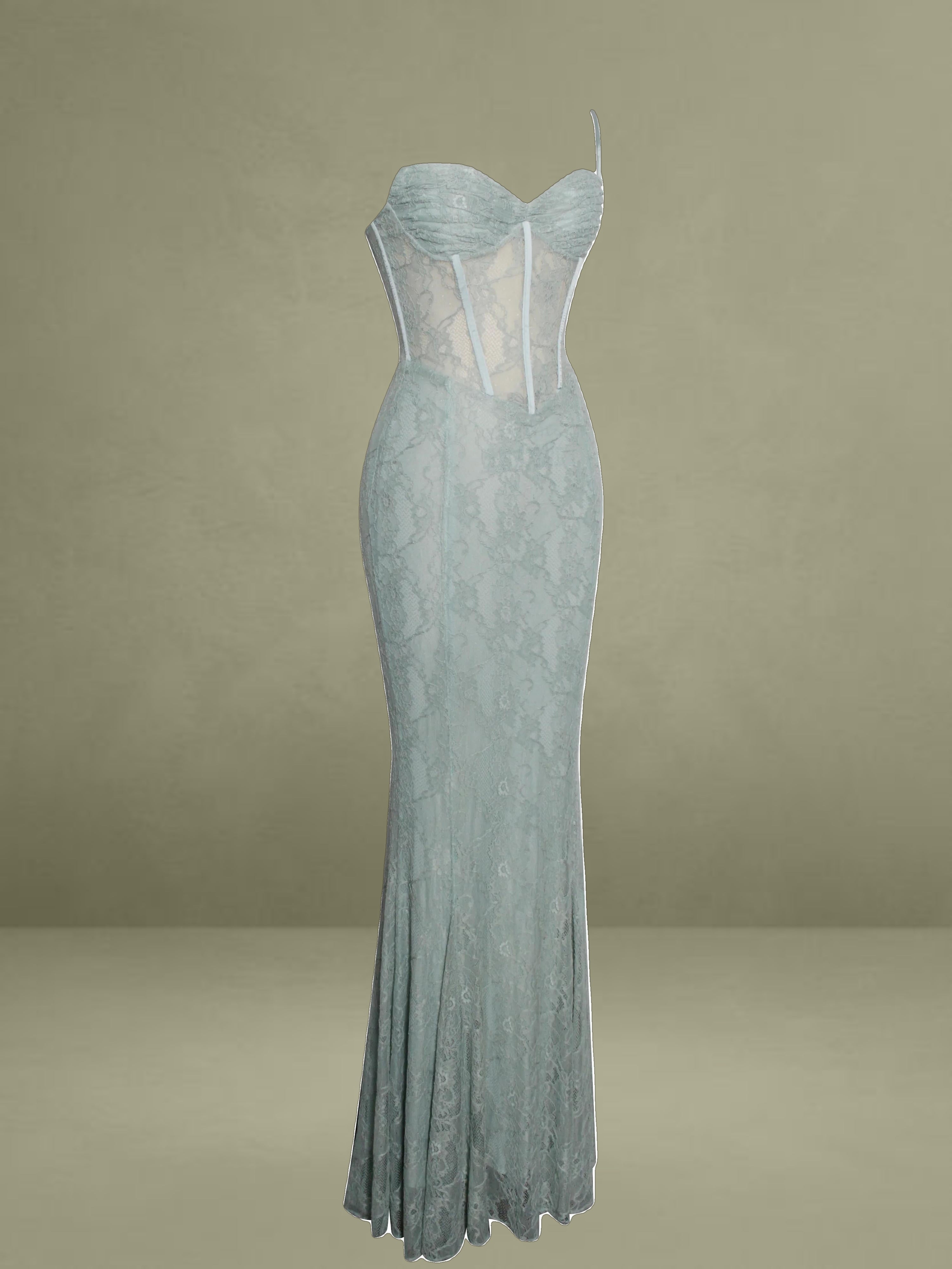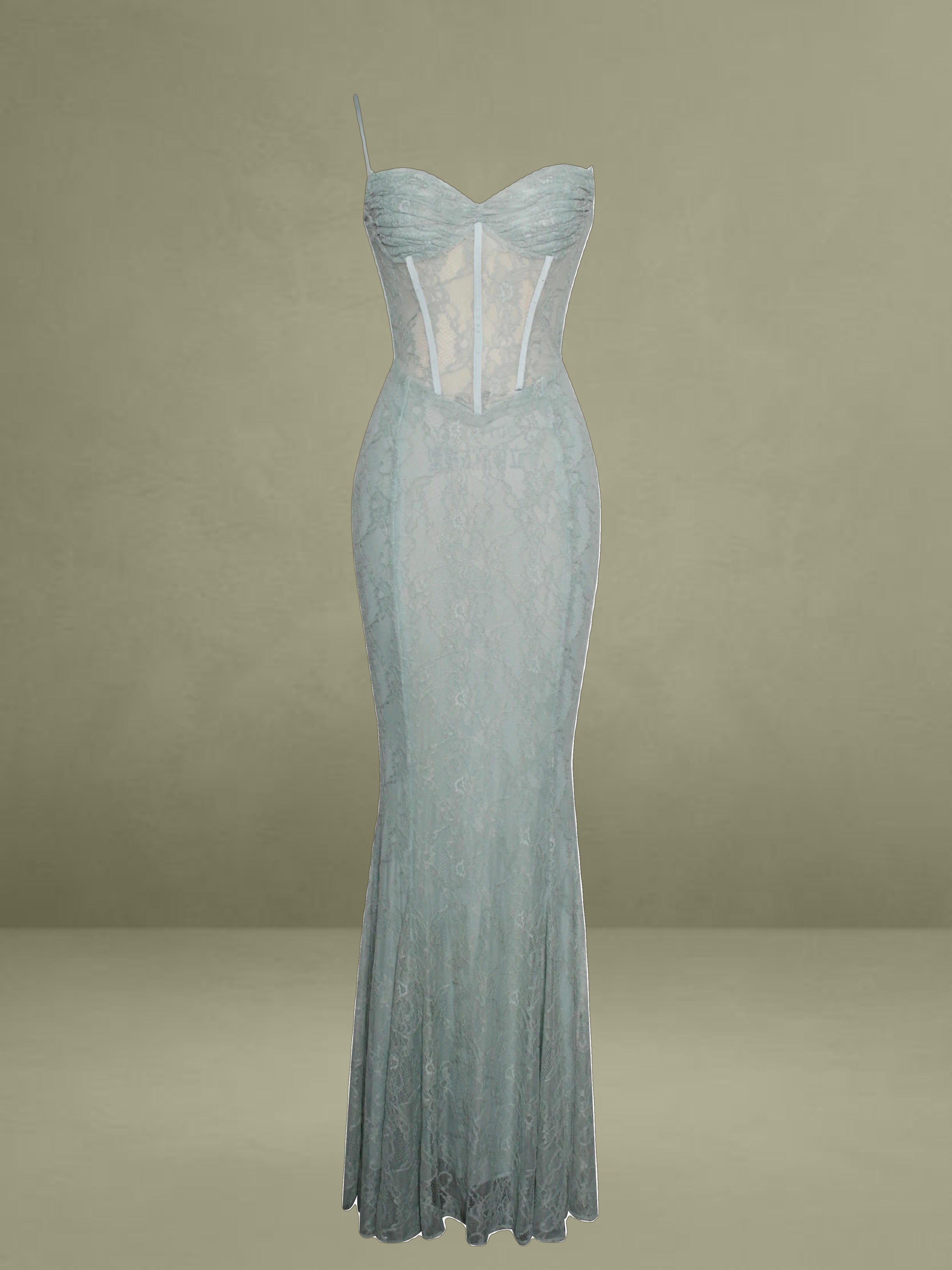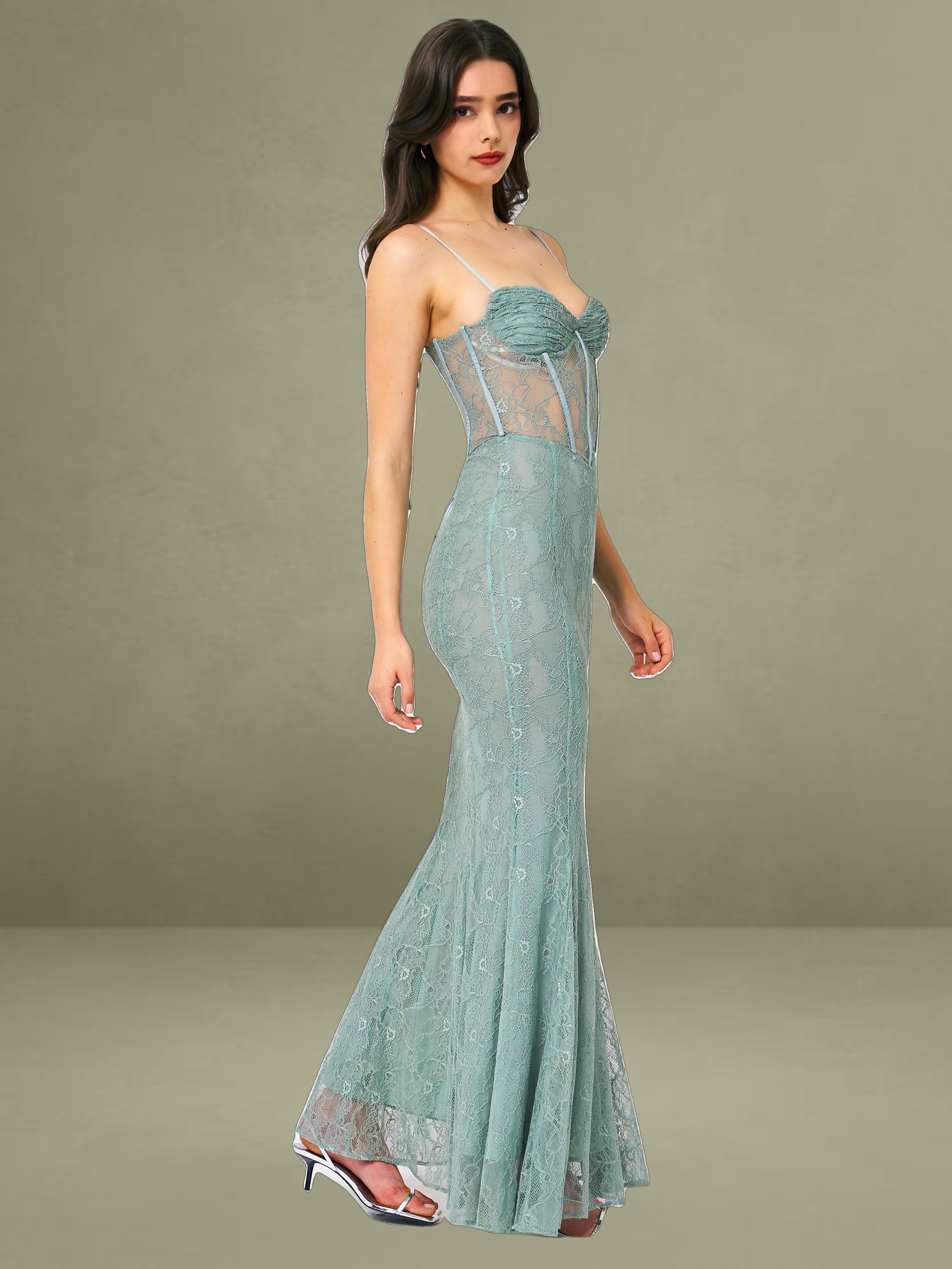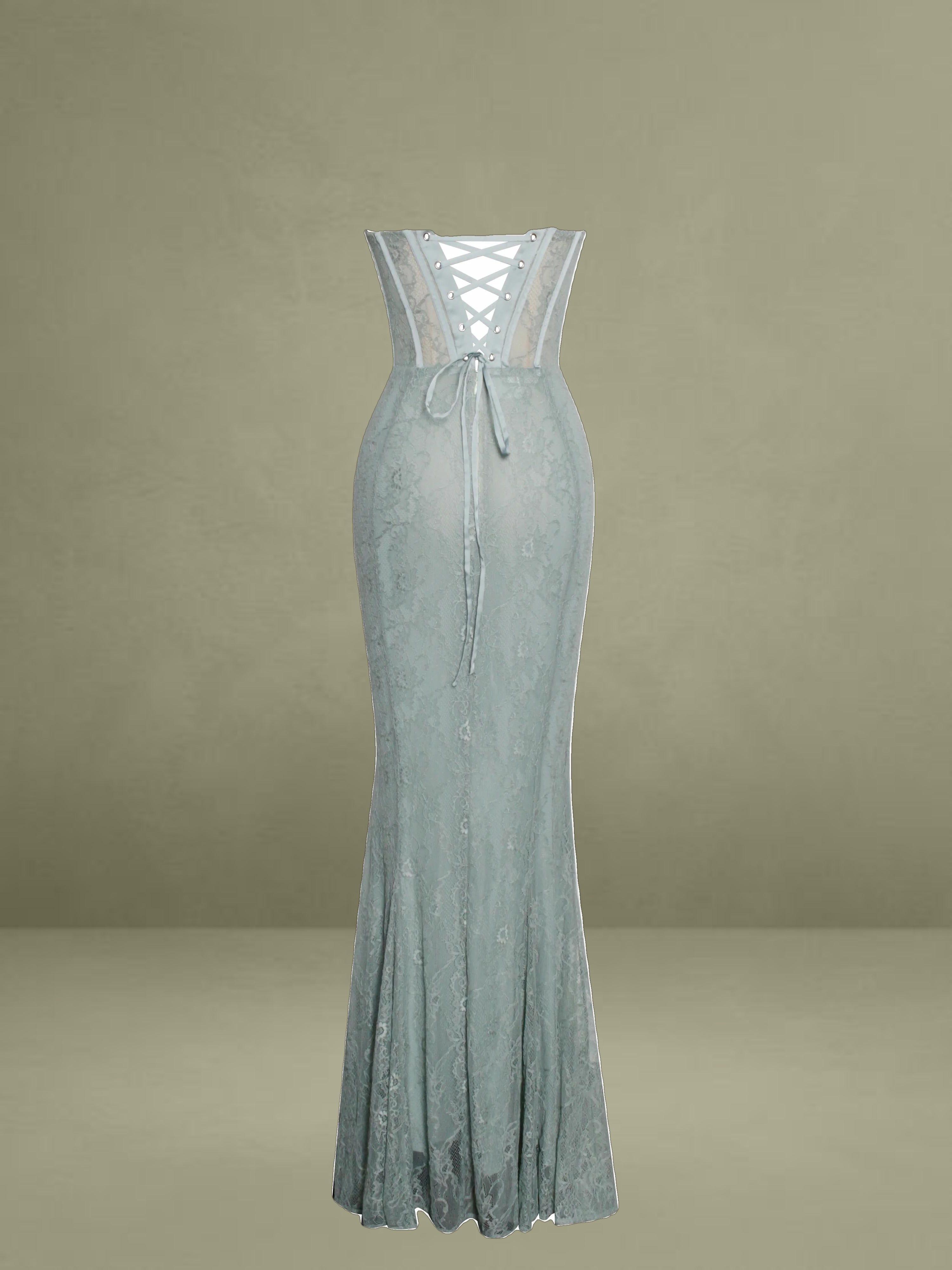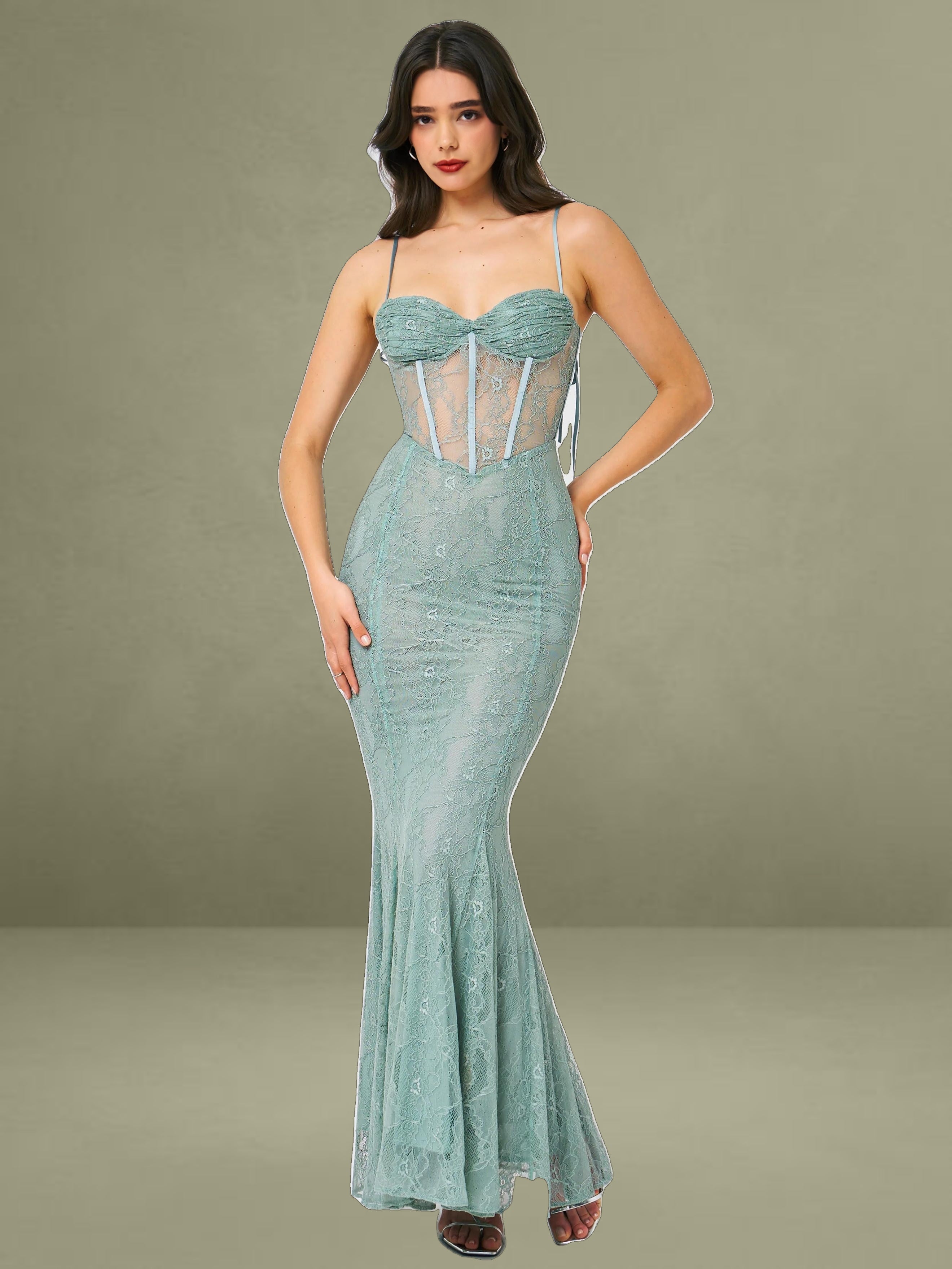Behold the Janelle dress, a mesmerizing mermaid maxi seamlessly blending timeless elegance with modern charm. With a sweetheart neckline and adjustable straps, it guarantees a flawless fit. Crafted from luxurious lace fabric and fully lined for comfort, it showcases a V-shape waistline that beautifully accentuates your silhouette. The mermaid skirt adds a dramatic flair, while the lace-up back detail and invisible zipper ensure a seamless and secure finish. Perfect for formal occasions, this dress is crafted to make a lasting impression with its exquisite fusion of classic and contemporary elements.