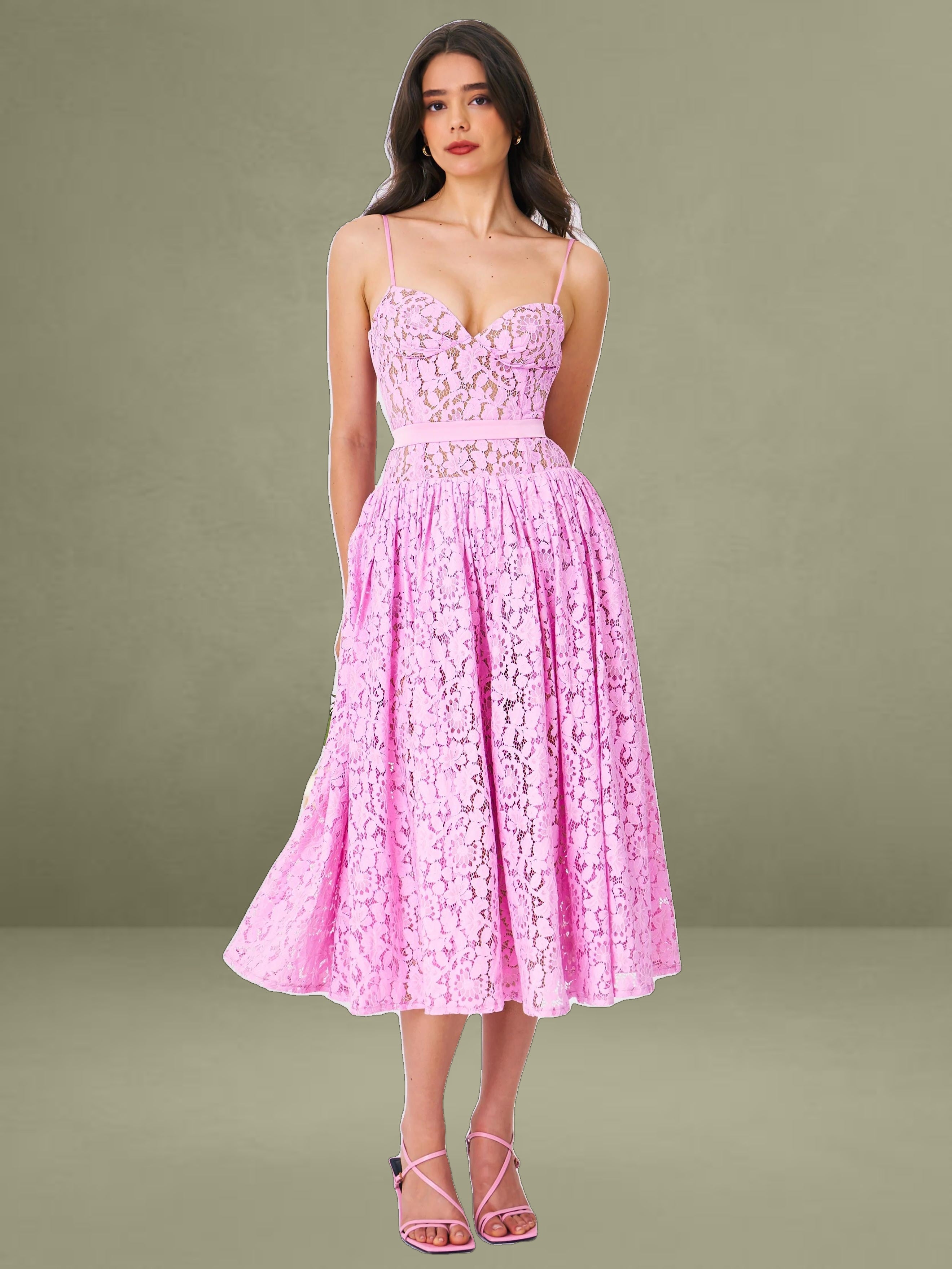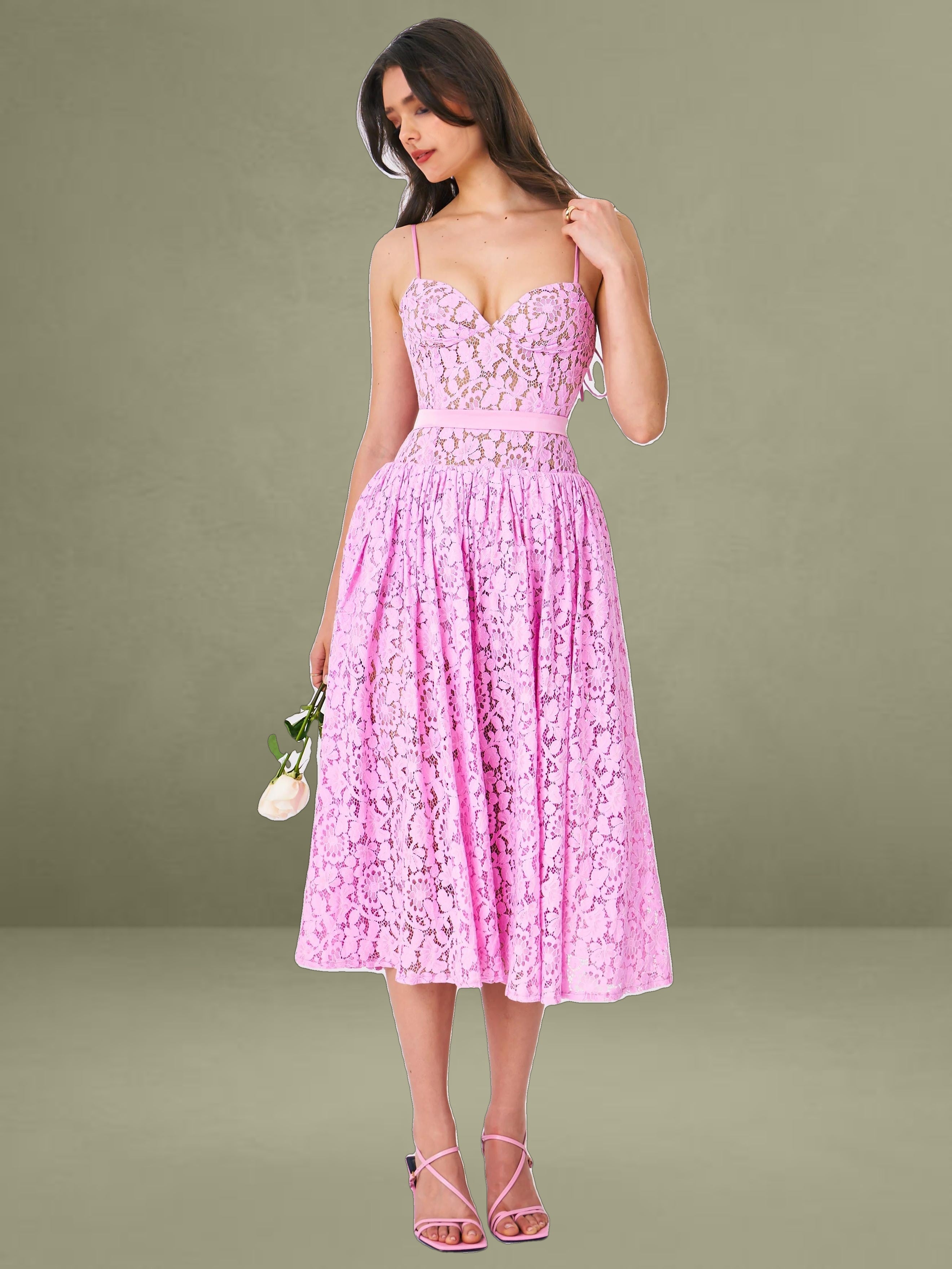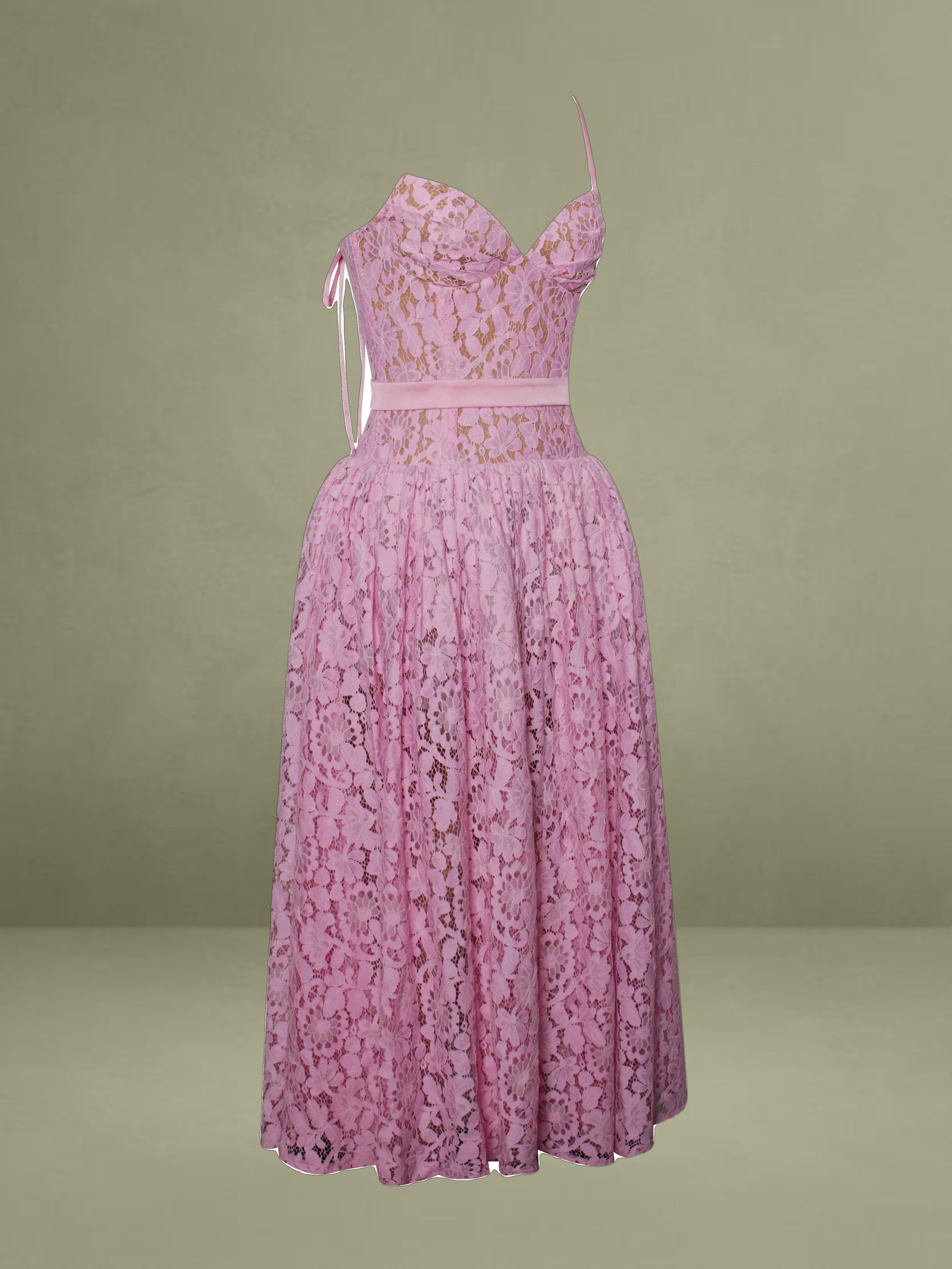 Indulge in the timeless allure of our Lorena dress, where every detail whispers sophistication and grace. Crafted from delicate lace fabric, it's a testament to elegance redefined. Adjustable straps guarantee a personalized fit, while padded cups ensure comfort without compromising style. The drop waist silhouette adds a contemporary edge, beautifully enhanced by the satin decoration strap for a touch of opulence. With built-in bones and full lining, this dress promises both structure and fluidity in movement. Glide into effortless elegance with the discreet invisible zipper at the middle back, making every entrance a moment to remember.