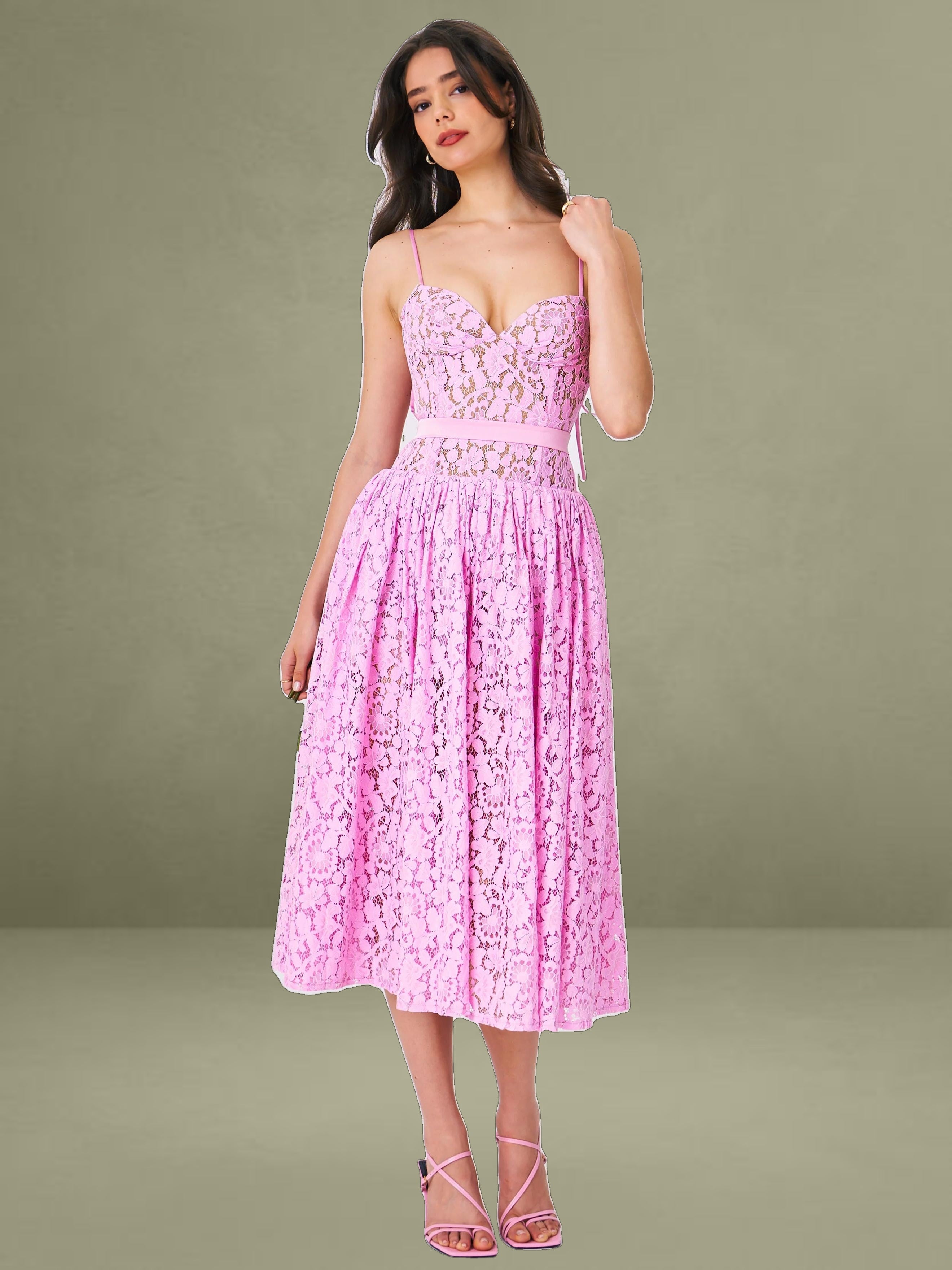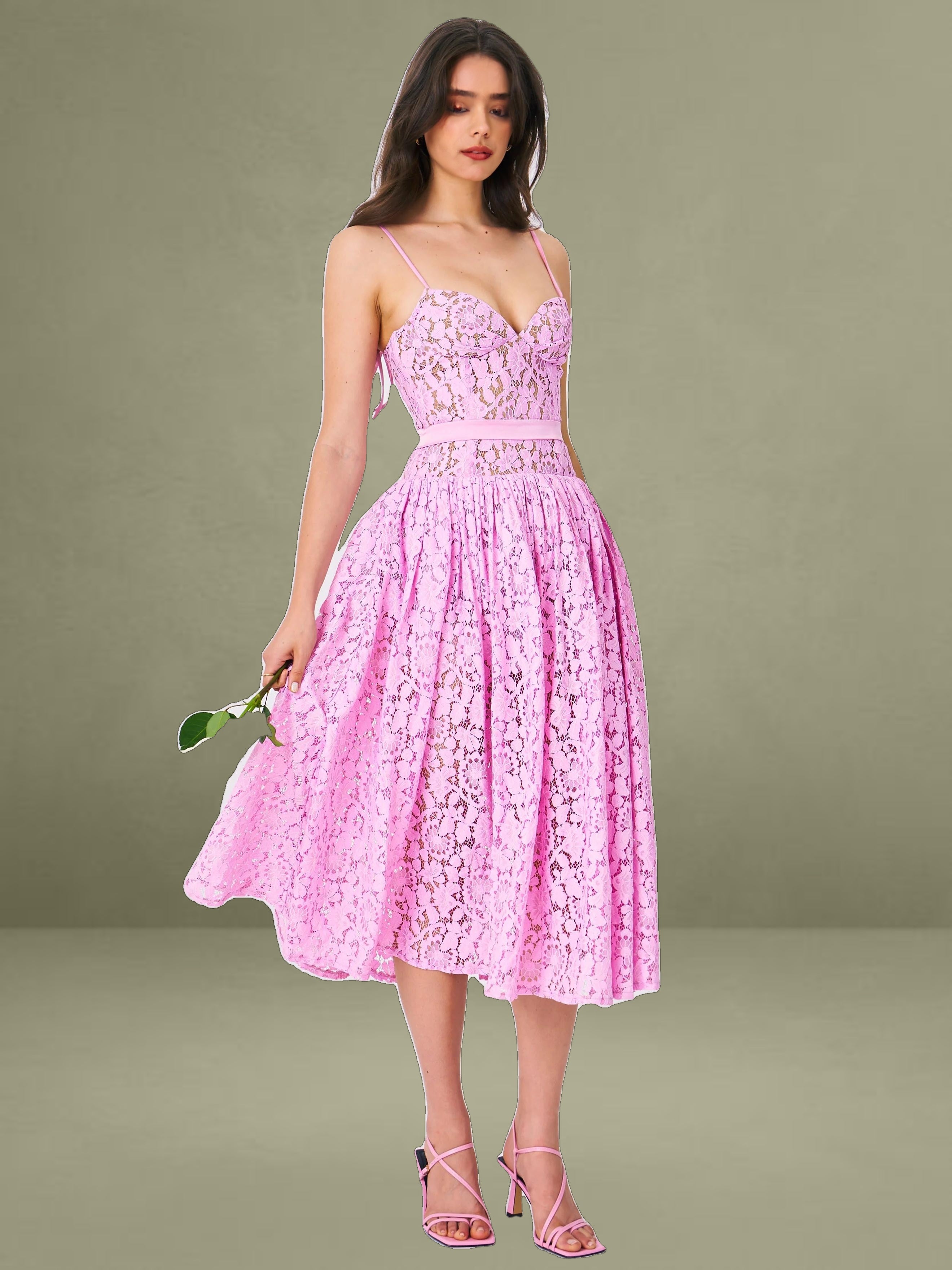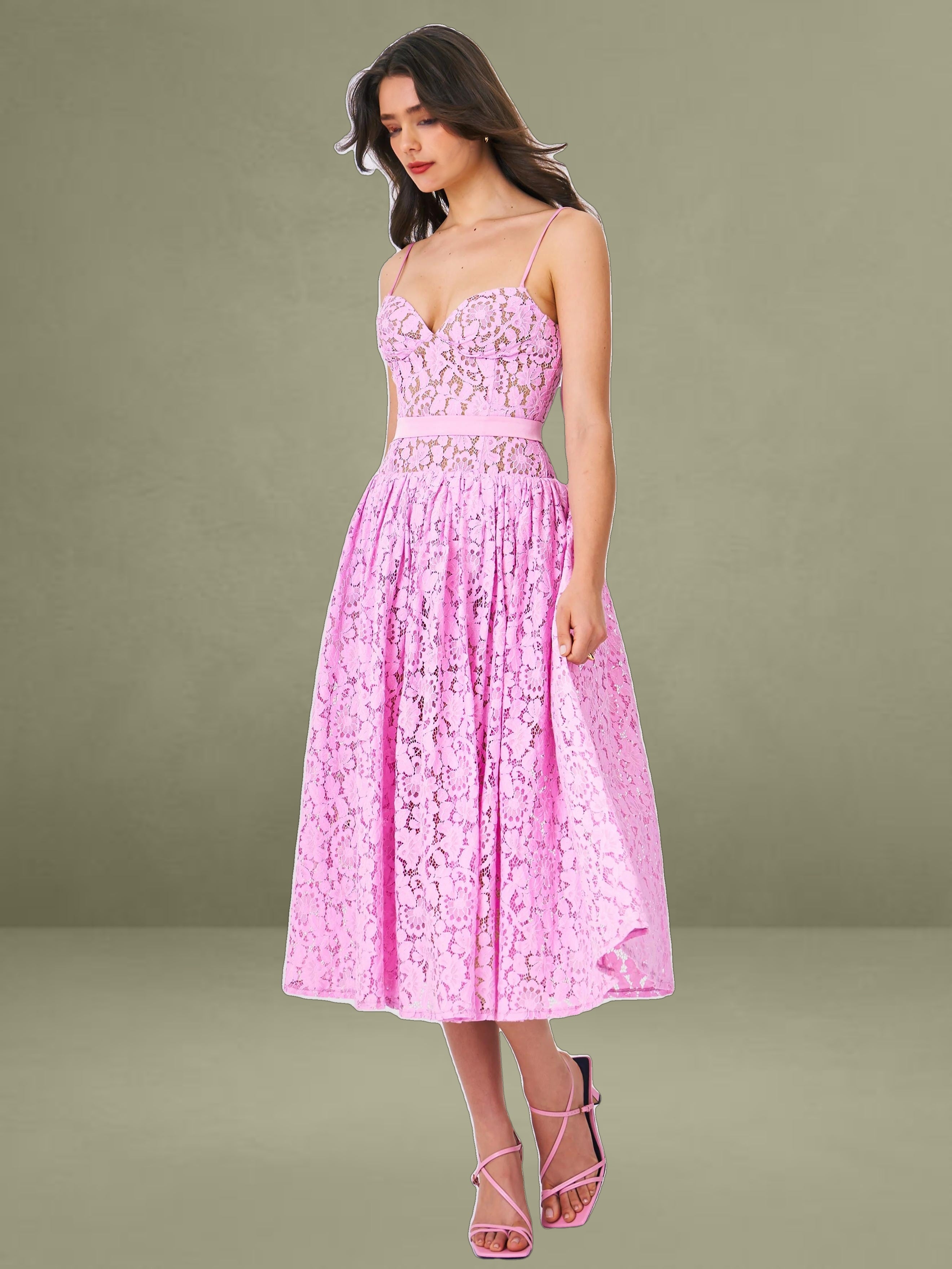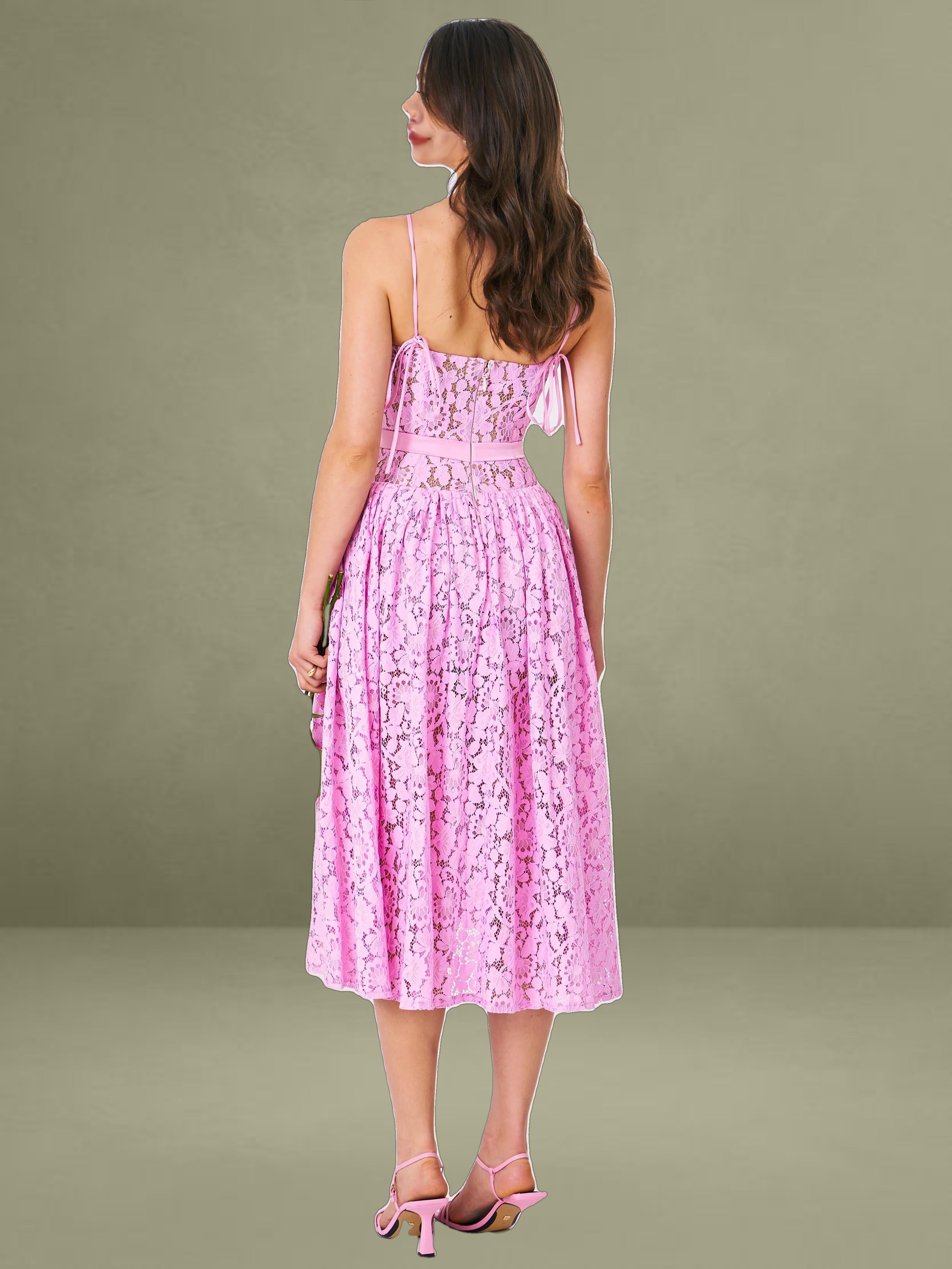 Indulge in the timeless allure of our Lorena dress, where every detail whispers sophistication and grace. Crafted from delicate lace fabric, it's a testament to elegance redefined. Adjustable straps guarantee a personalized fit, while padded cups ensure comfort without compromising style. The drop waist silhouette adds a contemporary edge, beautifully enhanced by the satin decoration strap for a touch of opulence. With built-in bones and full lining, this dress promises both structure and fluidity in movement. Glide into effortless elegance with the discreet invisible zipper at the middle back, making every entrance a moment to remember.