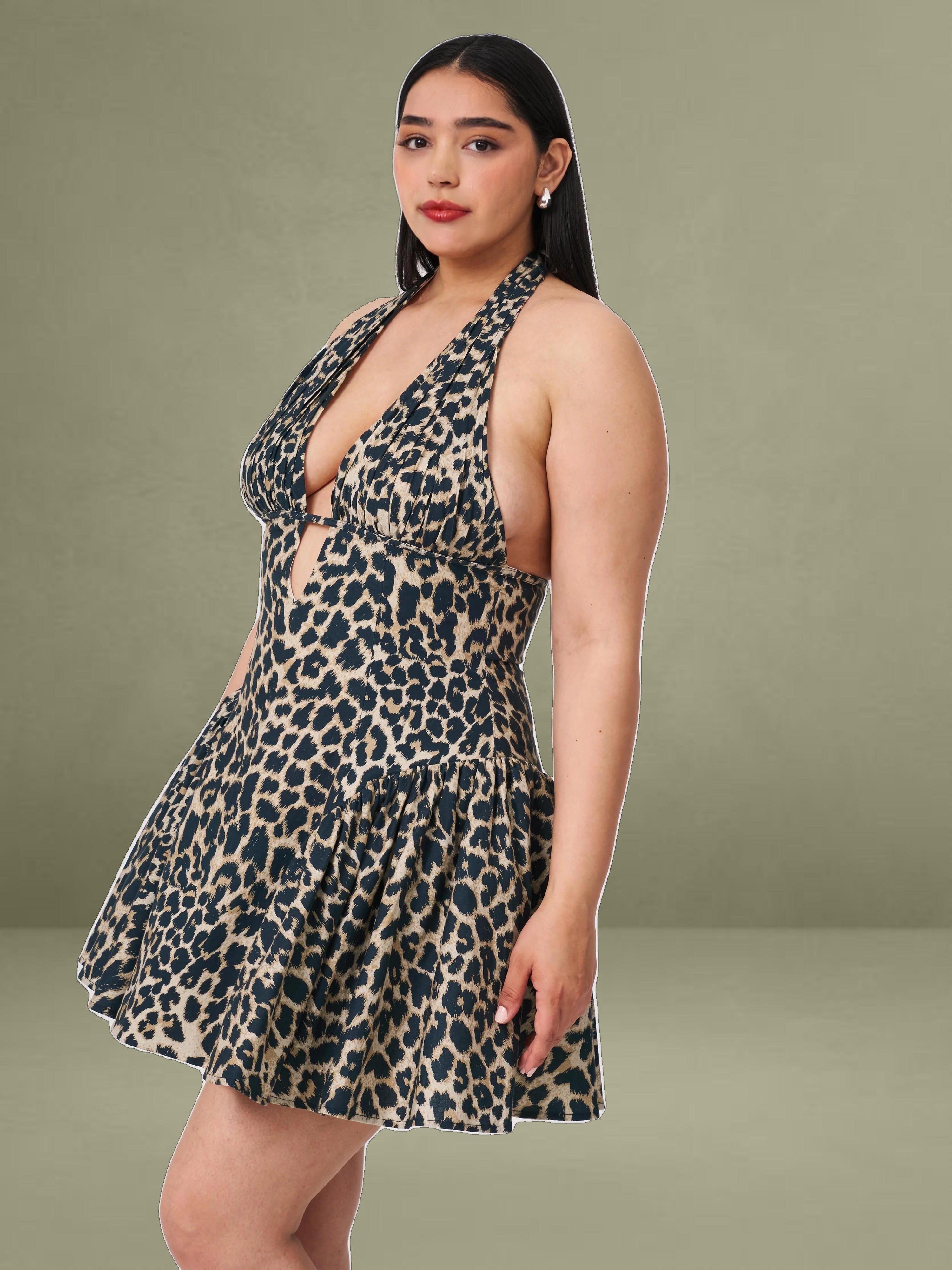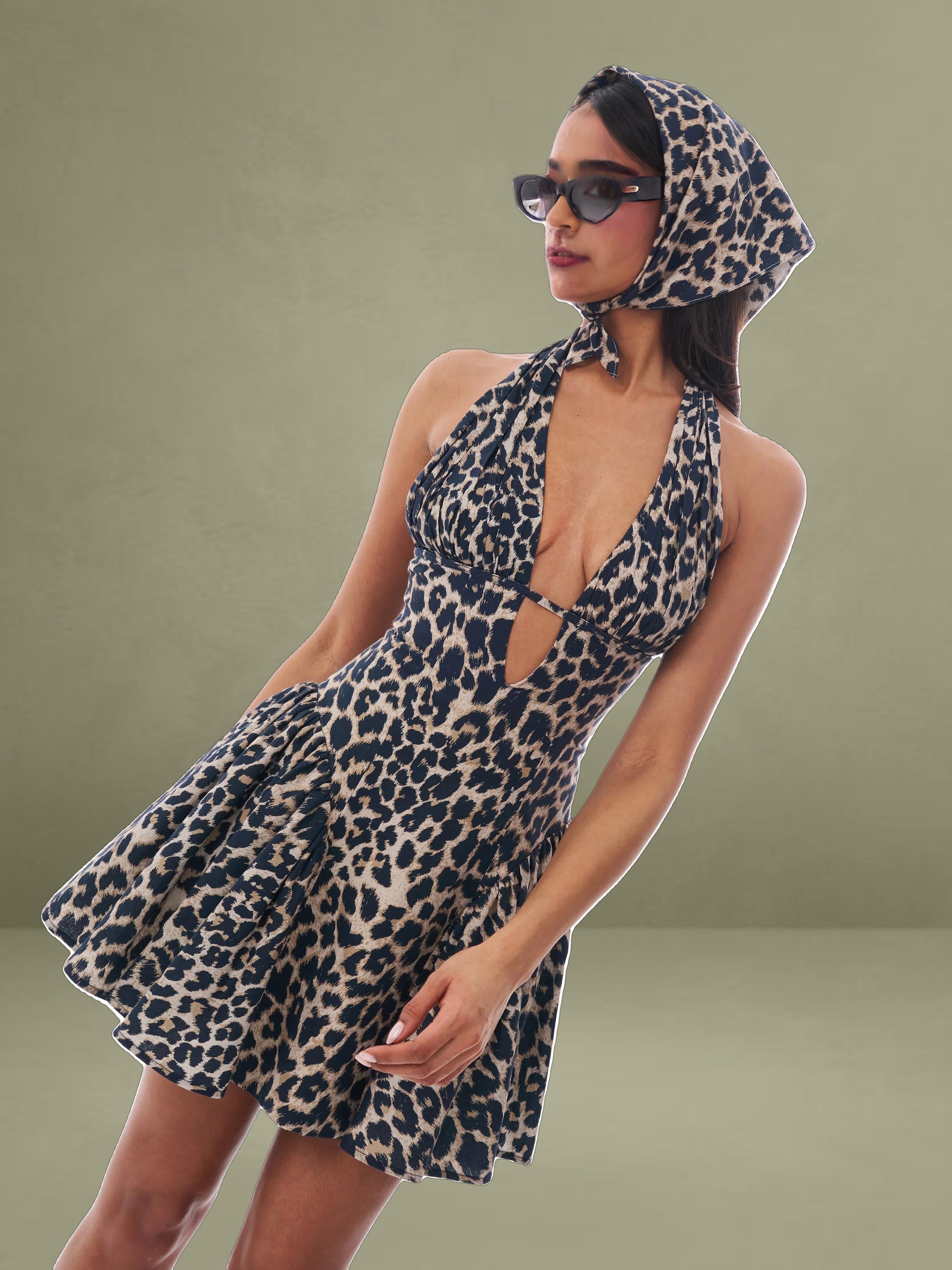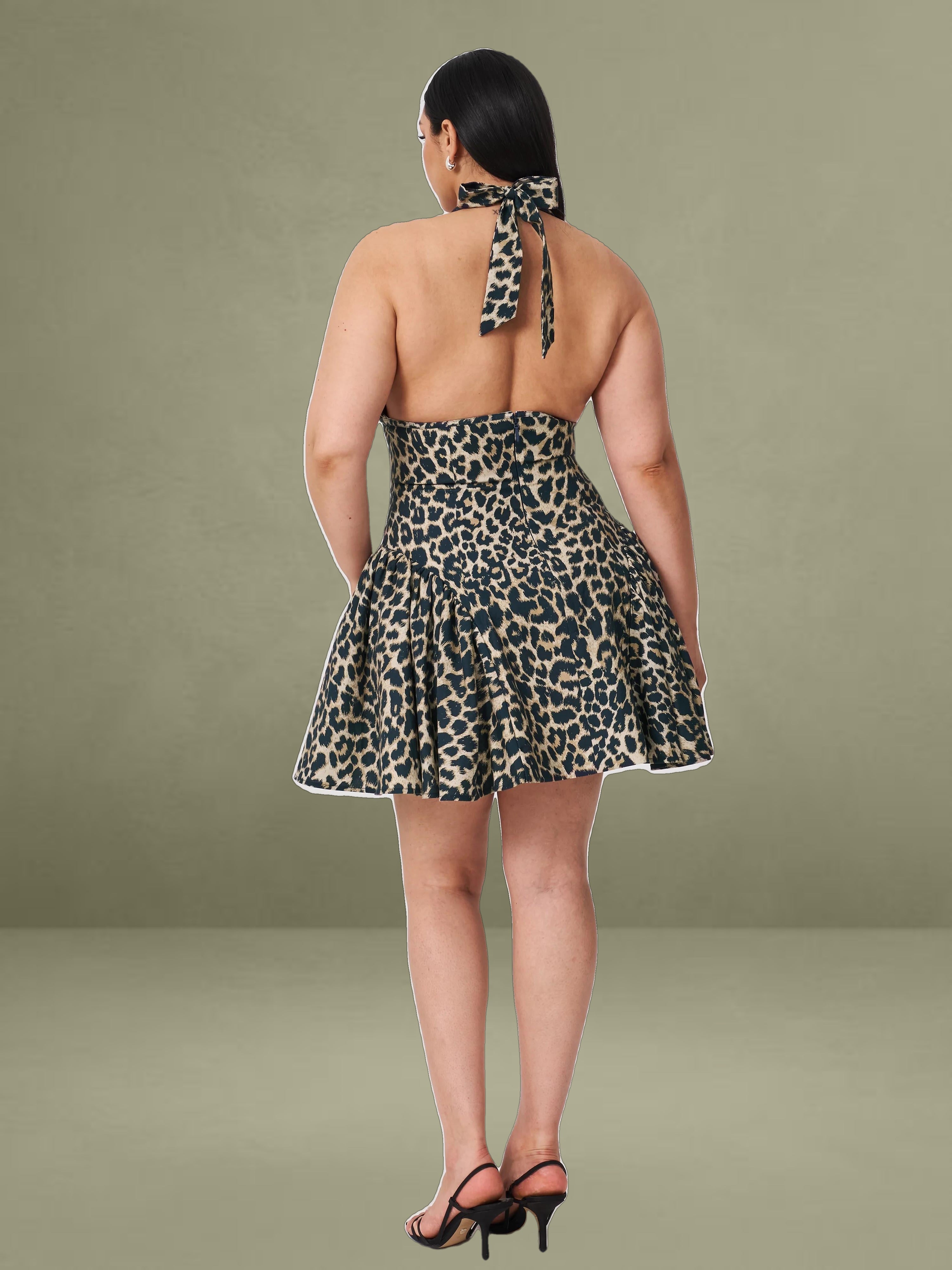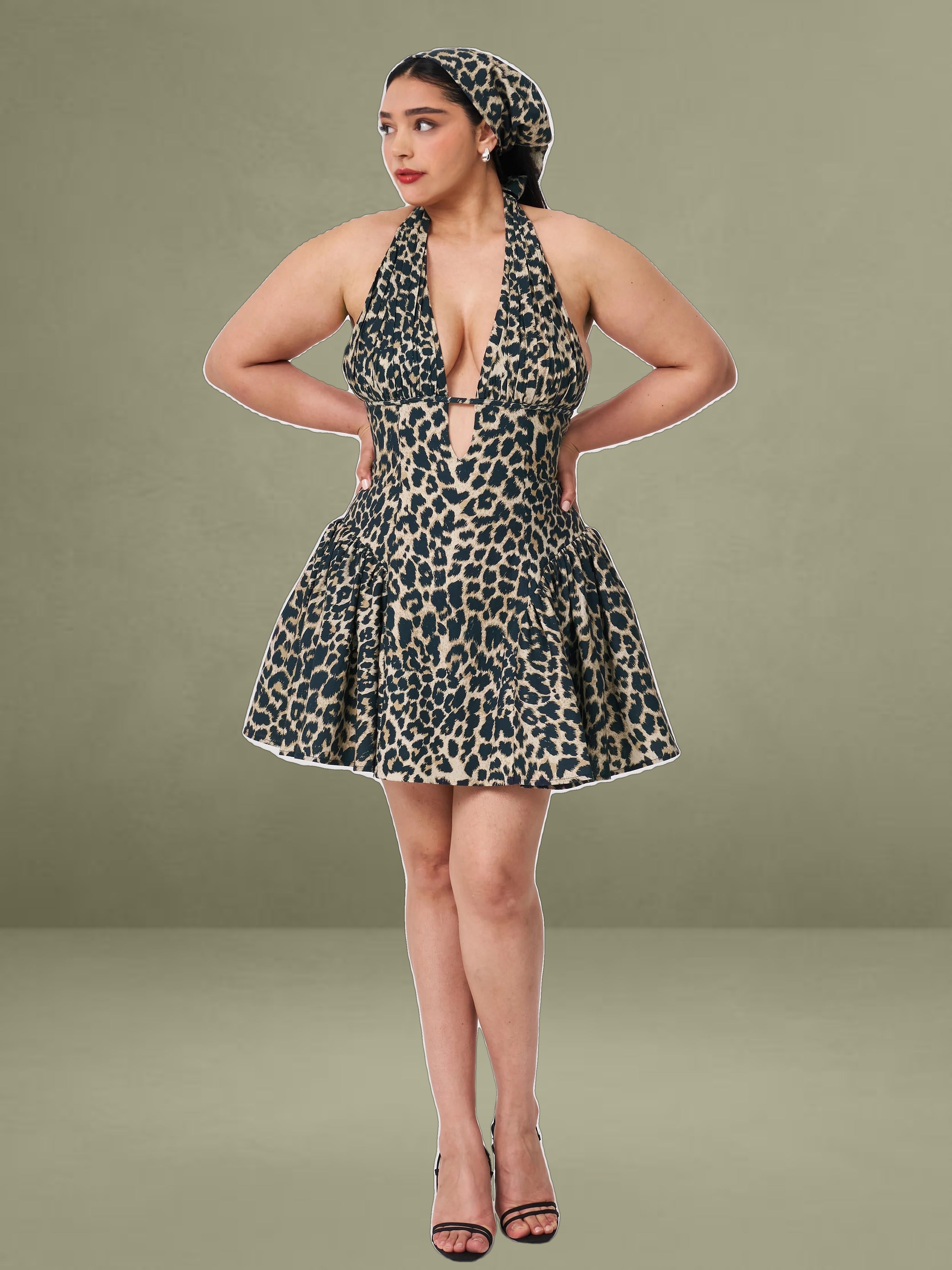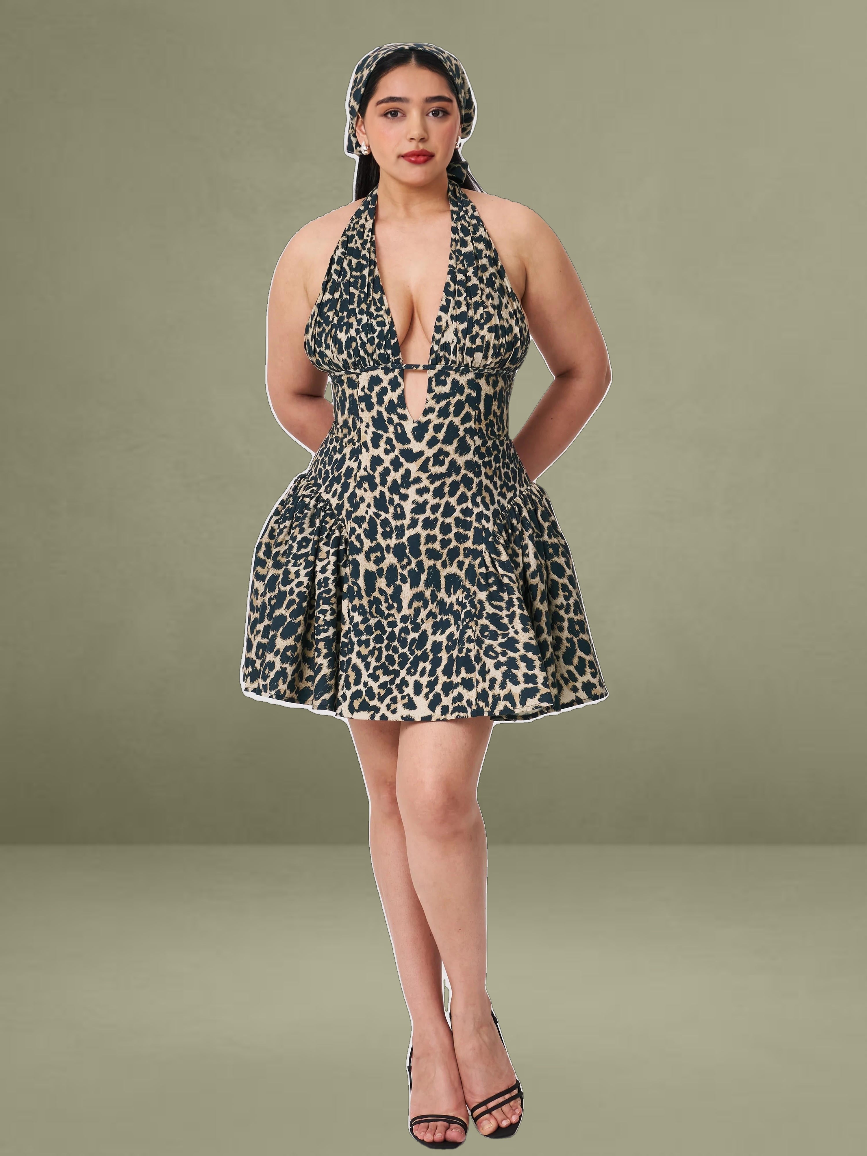 The Mackenzie Dress is the perfect blend of bold and breezy style, ideal for spring picnics, casual outings, vacations, and holidays. Made from lightweight linen fabric, it features a chic cheetah print that adds a touch of wild elegance. The halter neck design and ruched breast create a flattering silhouette, while the drop waist and inside tulle support give the skirt a structured yet flowy look. Finished with an invisible zipper for a seamless fit, this dress is a must-have for effortless, statement-making style. Perfectly matches with our Cheetah Print Head Scarf.