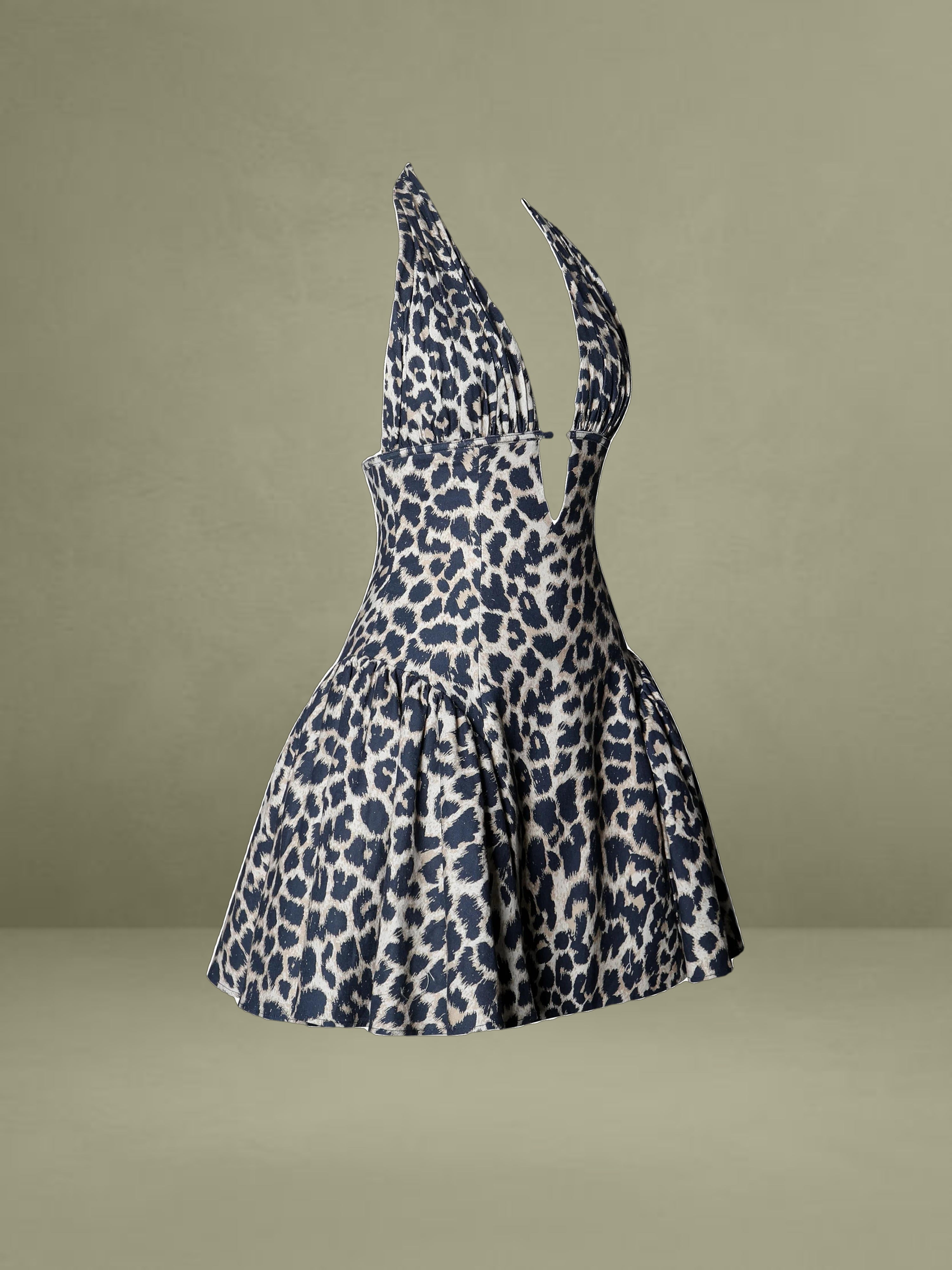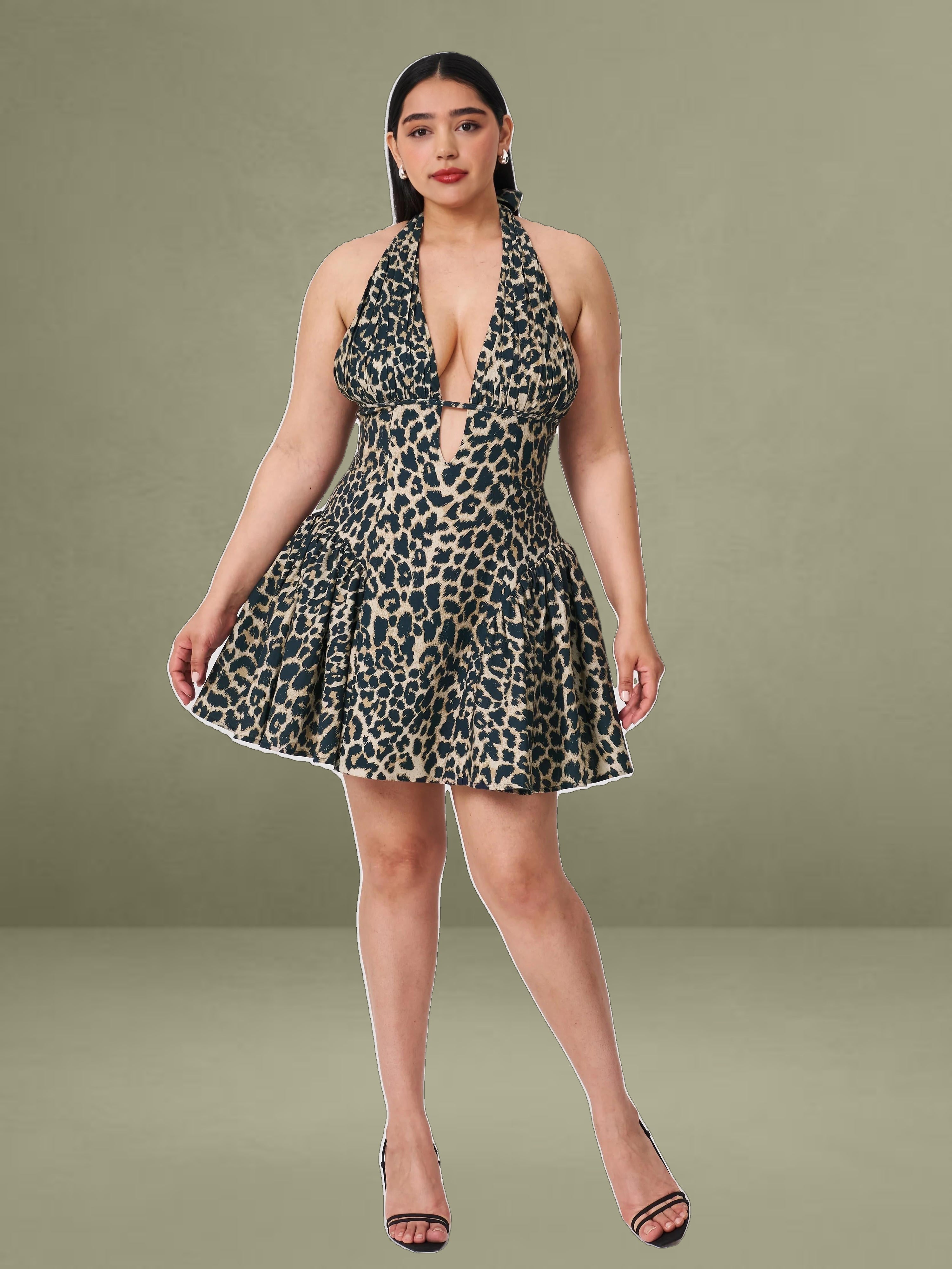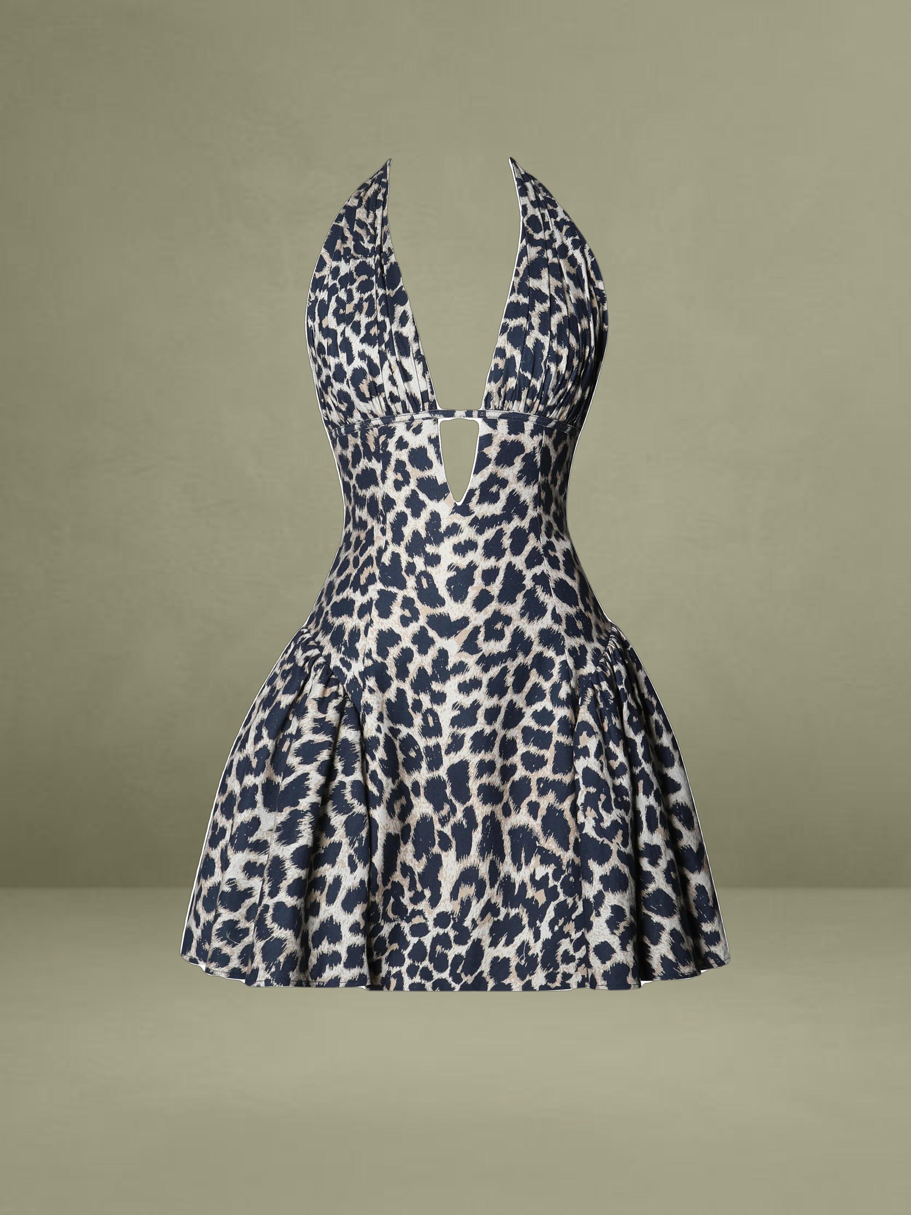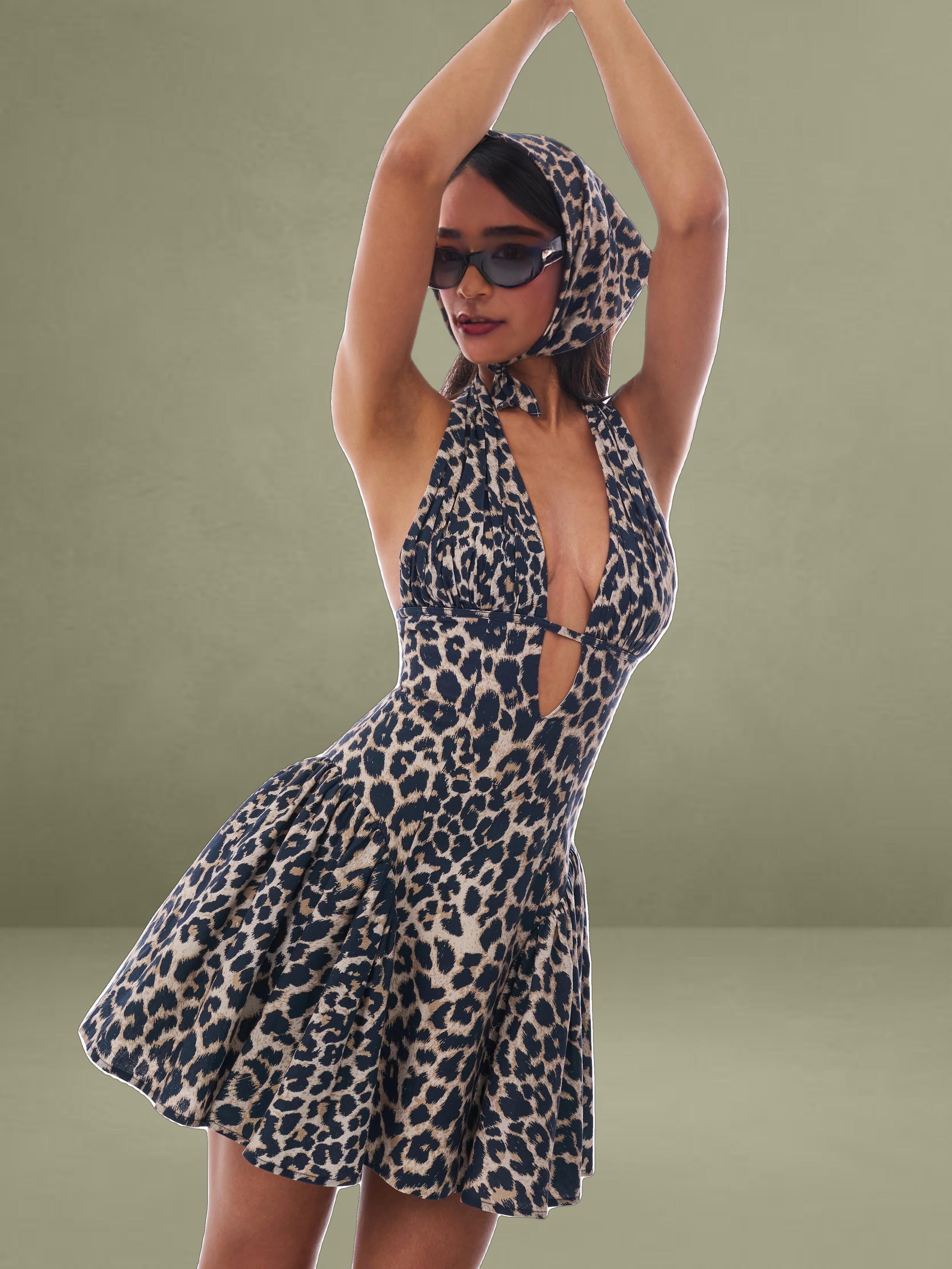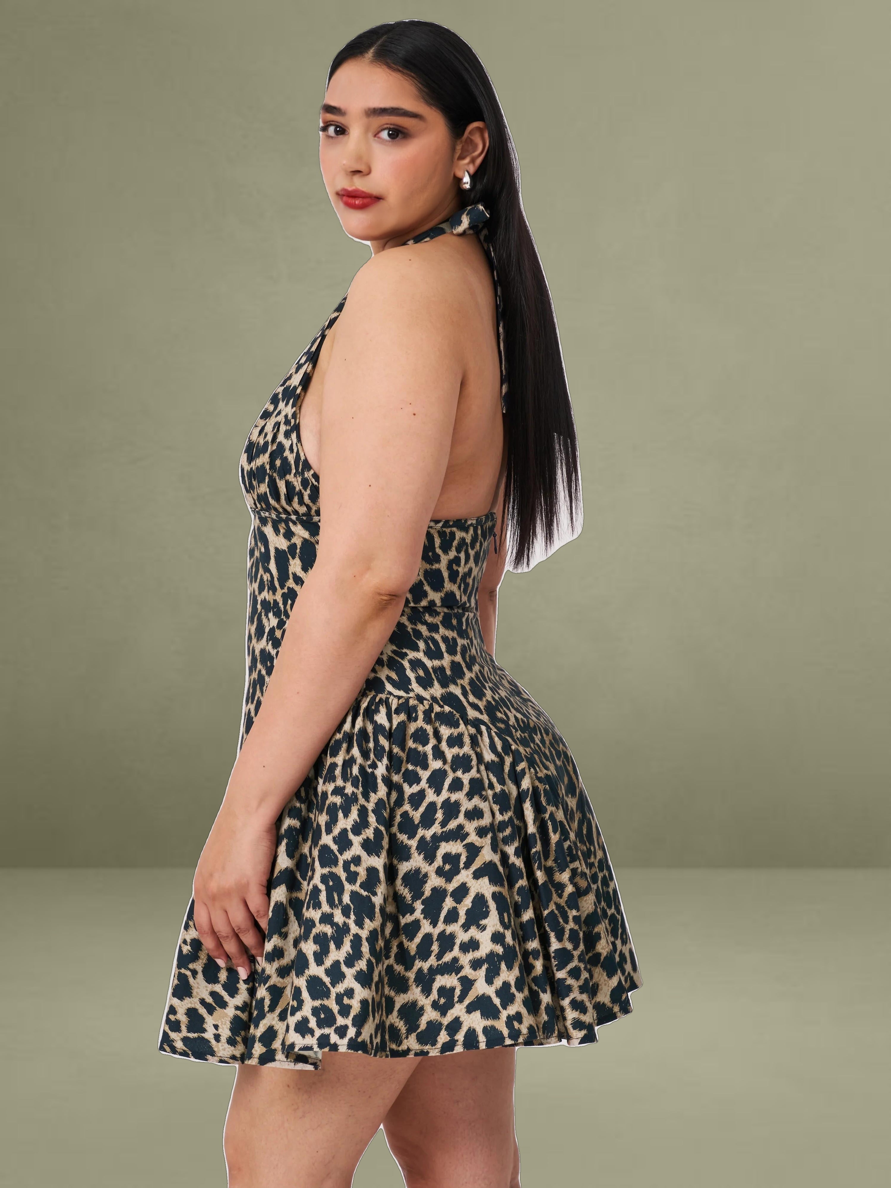 The Mackenzie Dress is the perfect blend of bold and breezy style, ideal for spring picnics, casual outings, vacations, and holidays. Made from lightweight linen fabric, it features a chic cheetah print that adds a touch of wild elegance. The halter neck design and ruched breast create a flattering silhouette, while the drop waist and inside tulle support give the skirt a structured yet flowy look. Finished with an invisible zipper for a seamless fit, this dress is a must-have for effortless, statement-making style. Perfectly matches with our Cheetah Print Head Scarf.