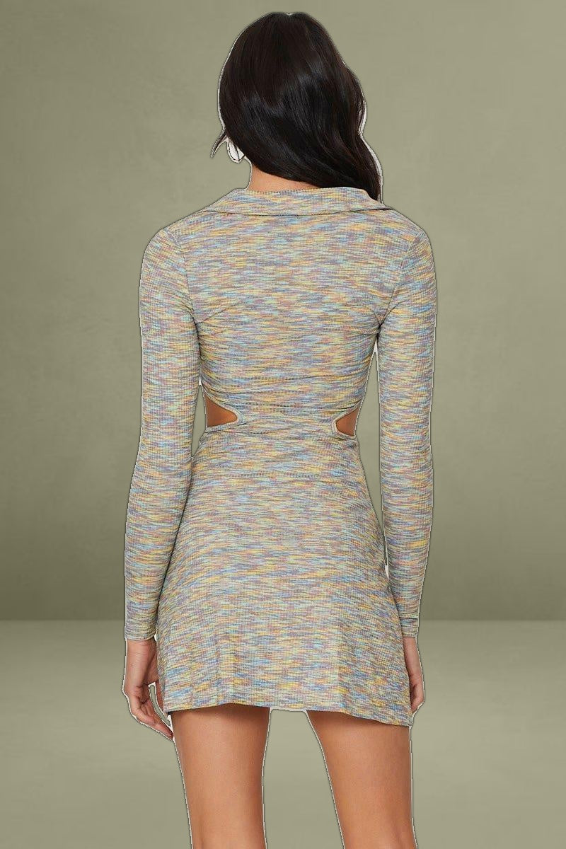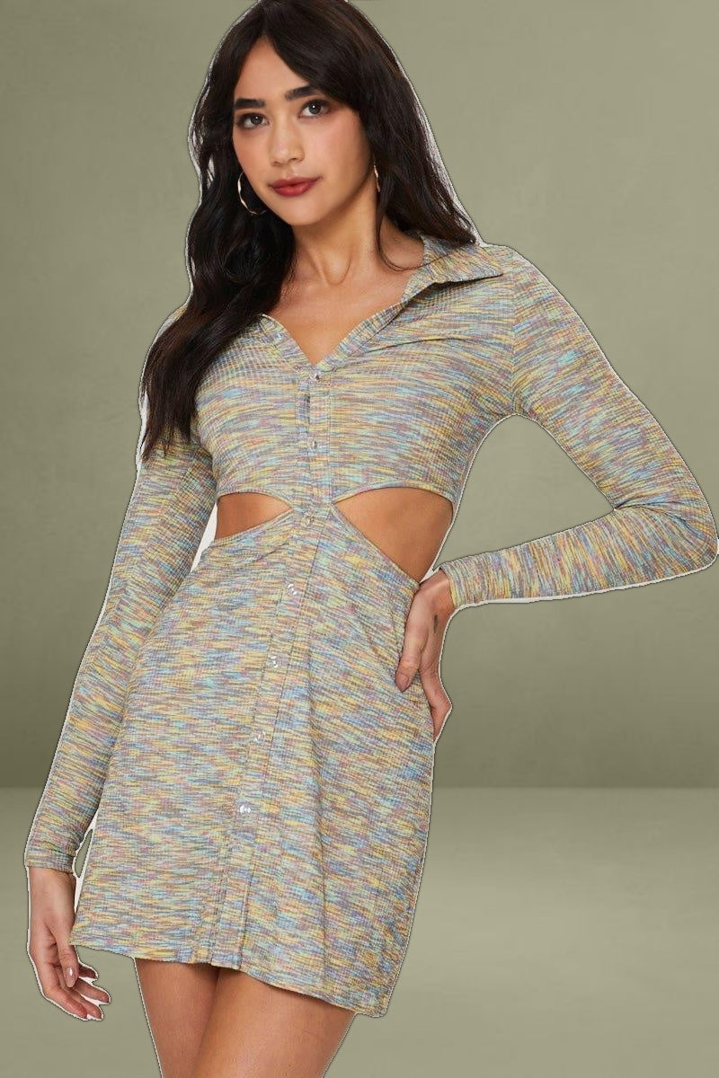 Features: Space Dye, Collared, Button Up Front, Cut Out Design