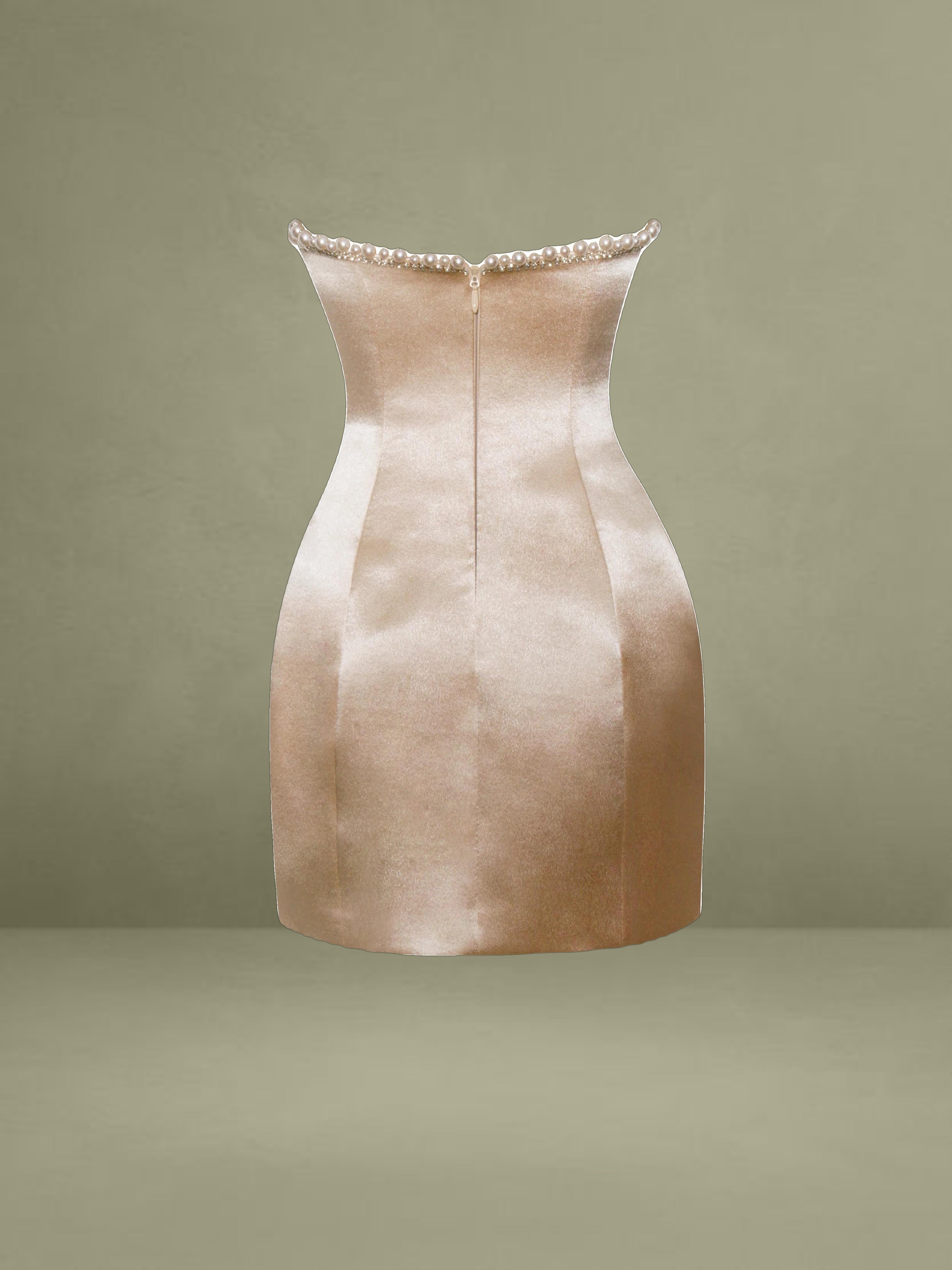 Introducing the Paisley Pearl Trim Gold Sleeveless Mini Dress, a stunning and versatile piece perfect for any occasion. This elegant gold bodycon mini dress hugs your curves beautifully, offering a sleek and sophisticated look. The sleeveless design exudes modernity, while the luxurious pearl and crystal trim adds a touch of glamour. Featuring a convenient invisible zipper and discreet pockets, this dress balances style with functionality. Fully lined for comfort, the Paisley dress ensures you’ll make a lasting impression wherever you go. And it makes a perfect match with our Pearl Handbag.