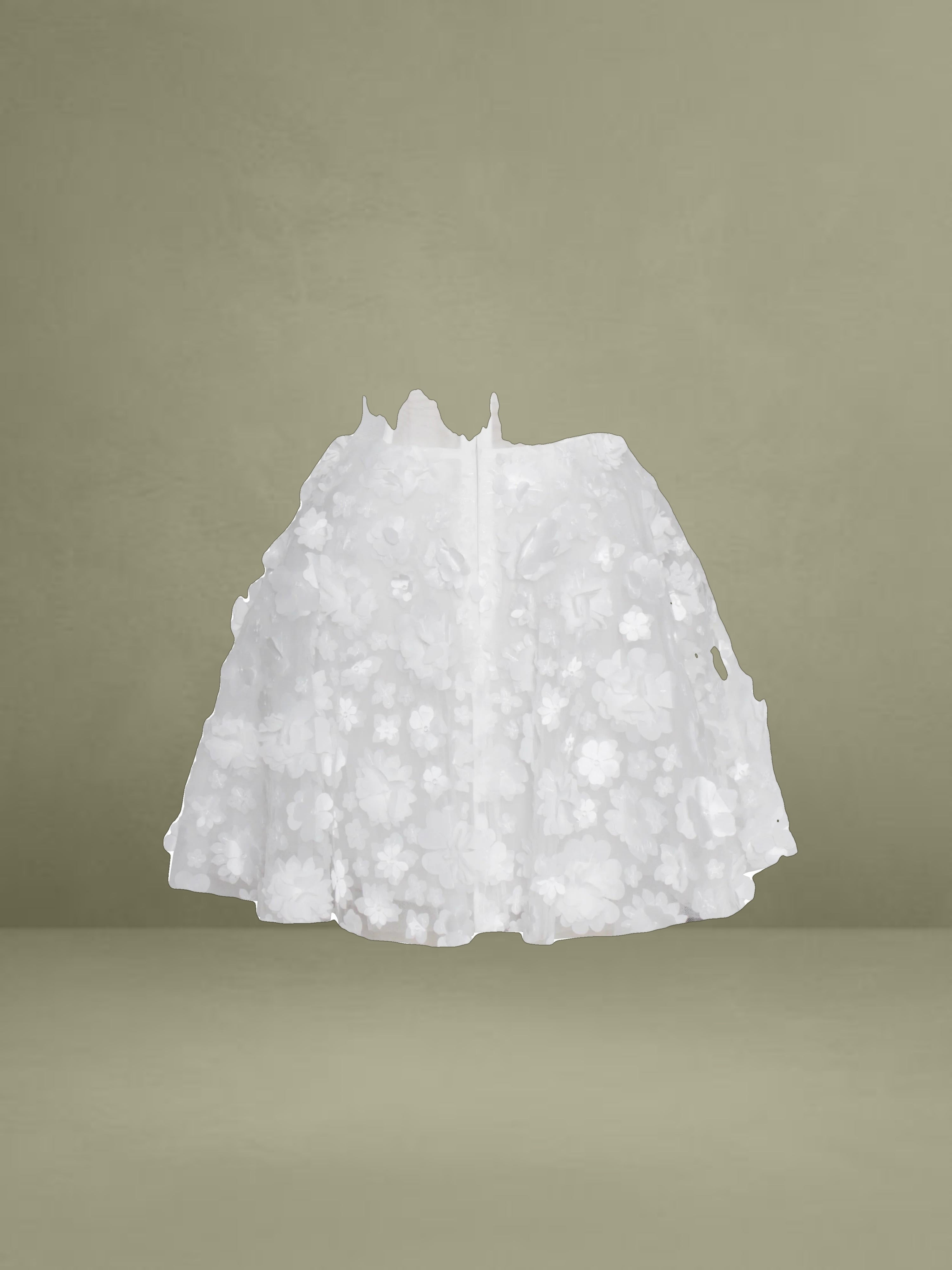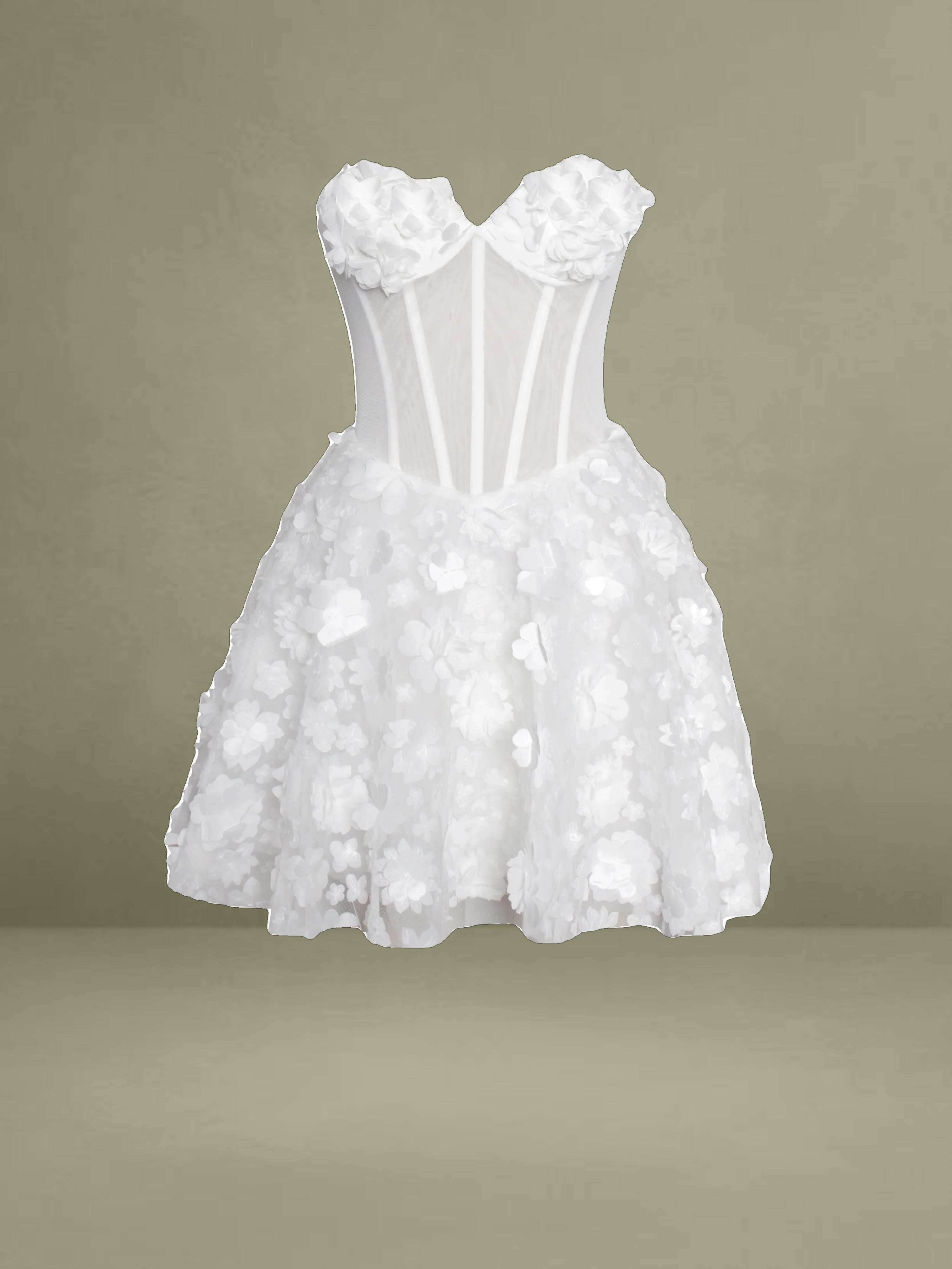 Introducing the Pamila, a charming puffy mini dress that combines playful elegance with refined details. Made from delicate mesh fabric and adorned with floral decorations, this dress features built-in bones and padded cups for a flattering and structured silhouette. The V-shape waistline enhances your figure, while the invisible zipper at the center back ensures a seamless fit. Perfect for any special occasion, this dress effortlessly blends whimsy with sophistication, making it a standout piece in your wardrobe.