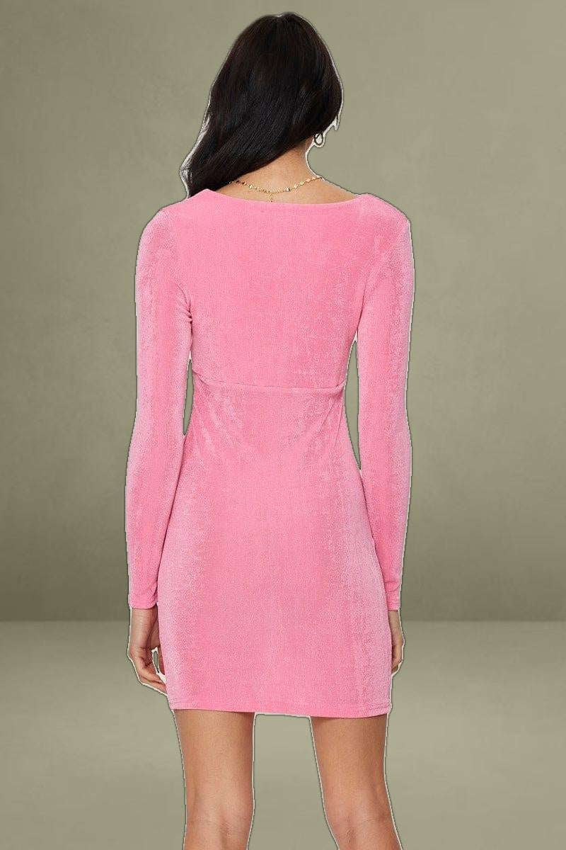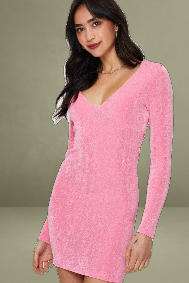 Features: Slinky Material, Bodycon, Mini Length, V Neckline