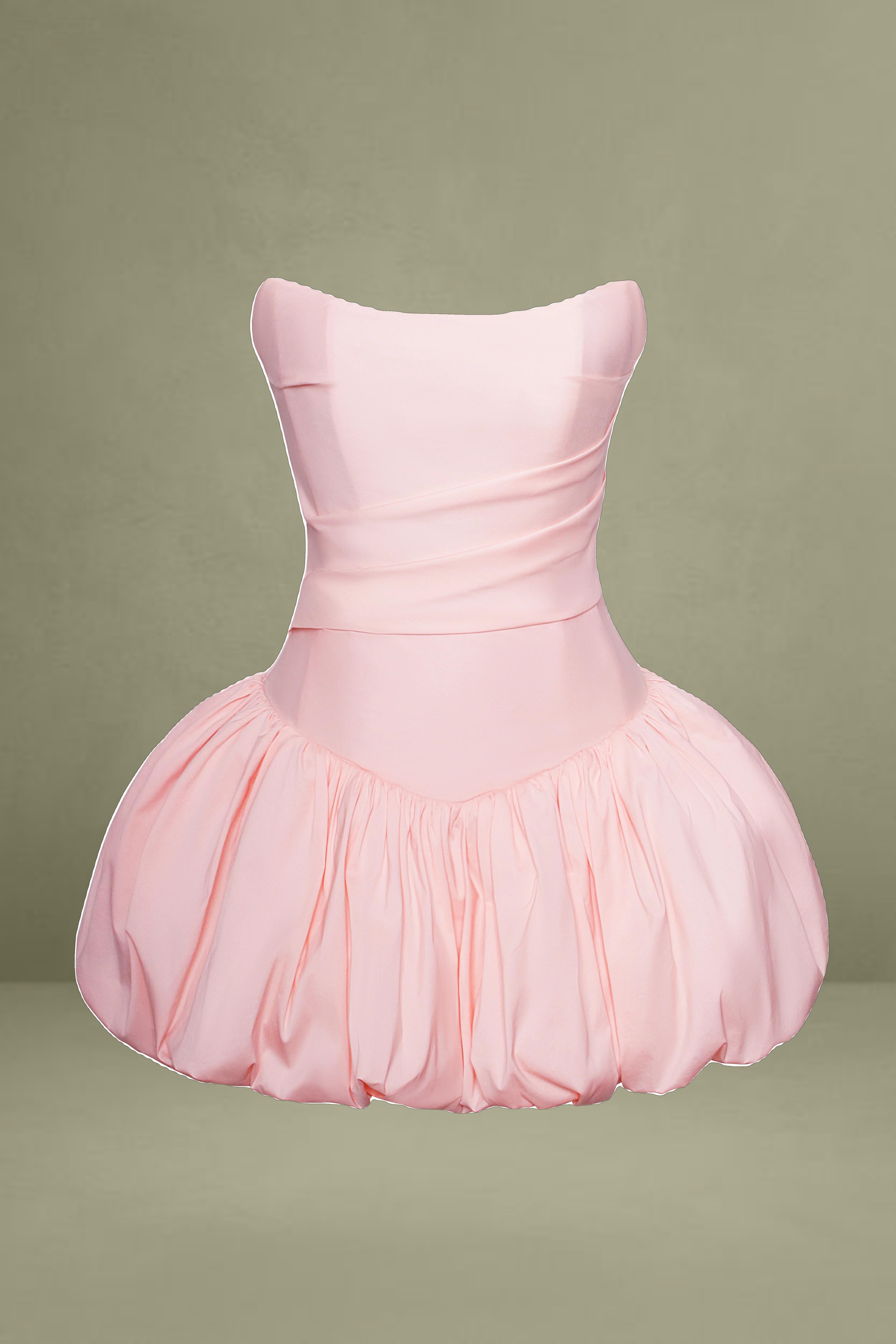 Discover a fashionable sleeveless mini dress that marries a lively appeal with contemporary grace. This dress has a dropped waist and a distinctive bubble hem. It's fully lined for comfort and to maintain its shape. Built-in boning offers extra support, and an invisible zipper gives it a smooth, seamless look. Functional pockets add utility without sacrificing style. Ideal for any event, this dress seamlessly combines refinement and enjoyment. It's also available in Blue.