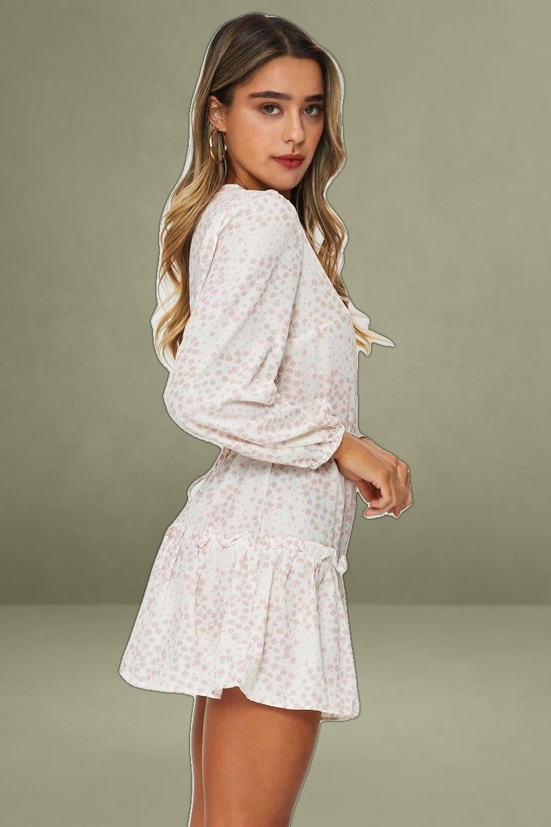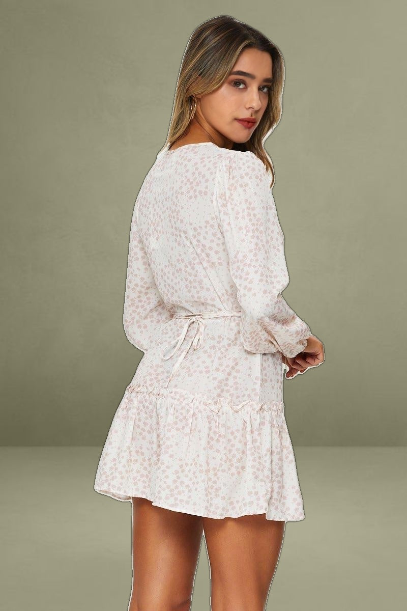 Features: Floral Print, Ruffle Detail, Waist Tie, Elasticised Wrists