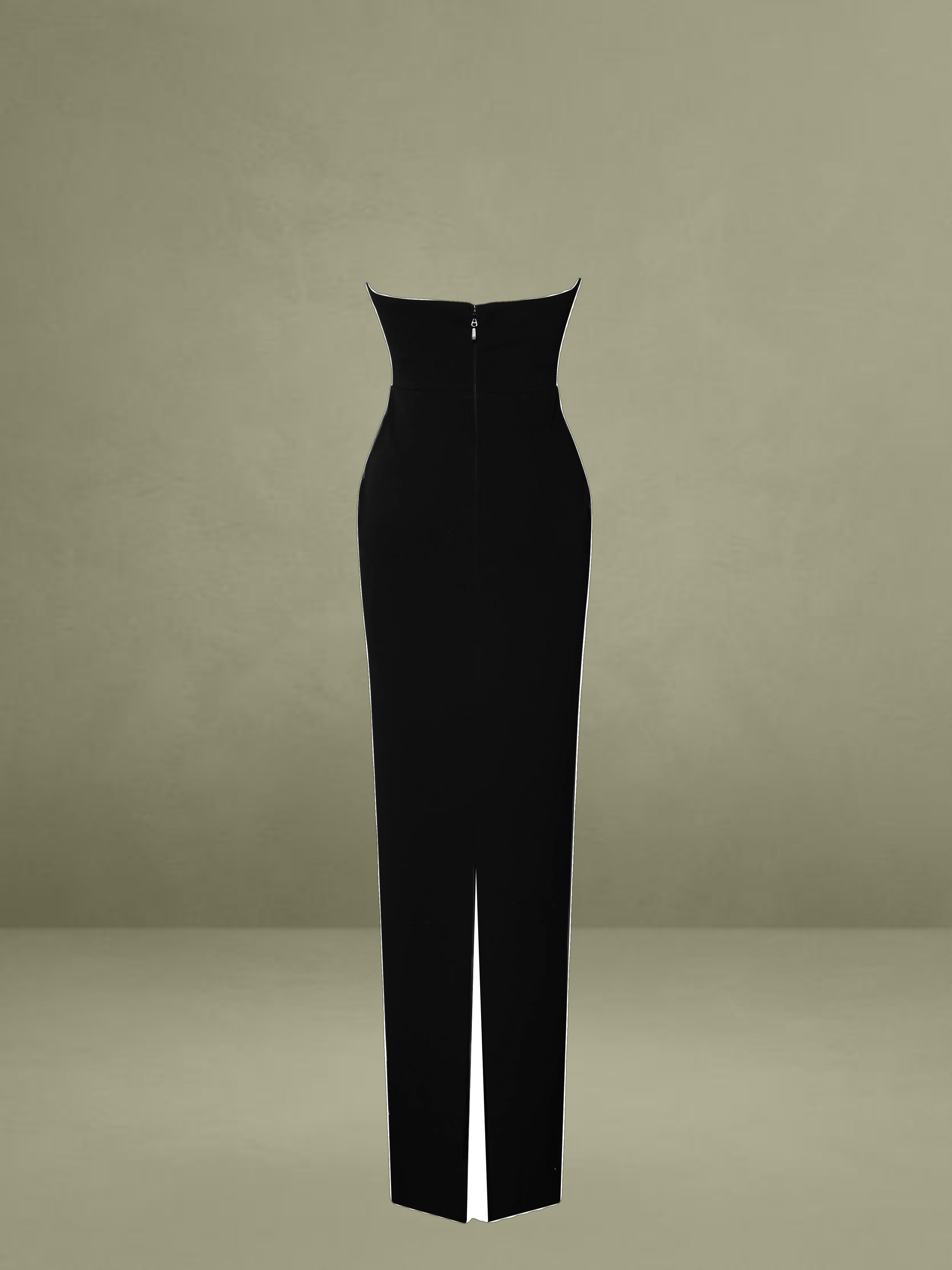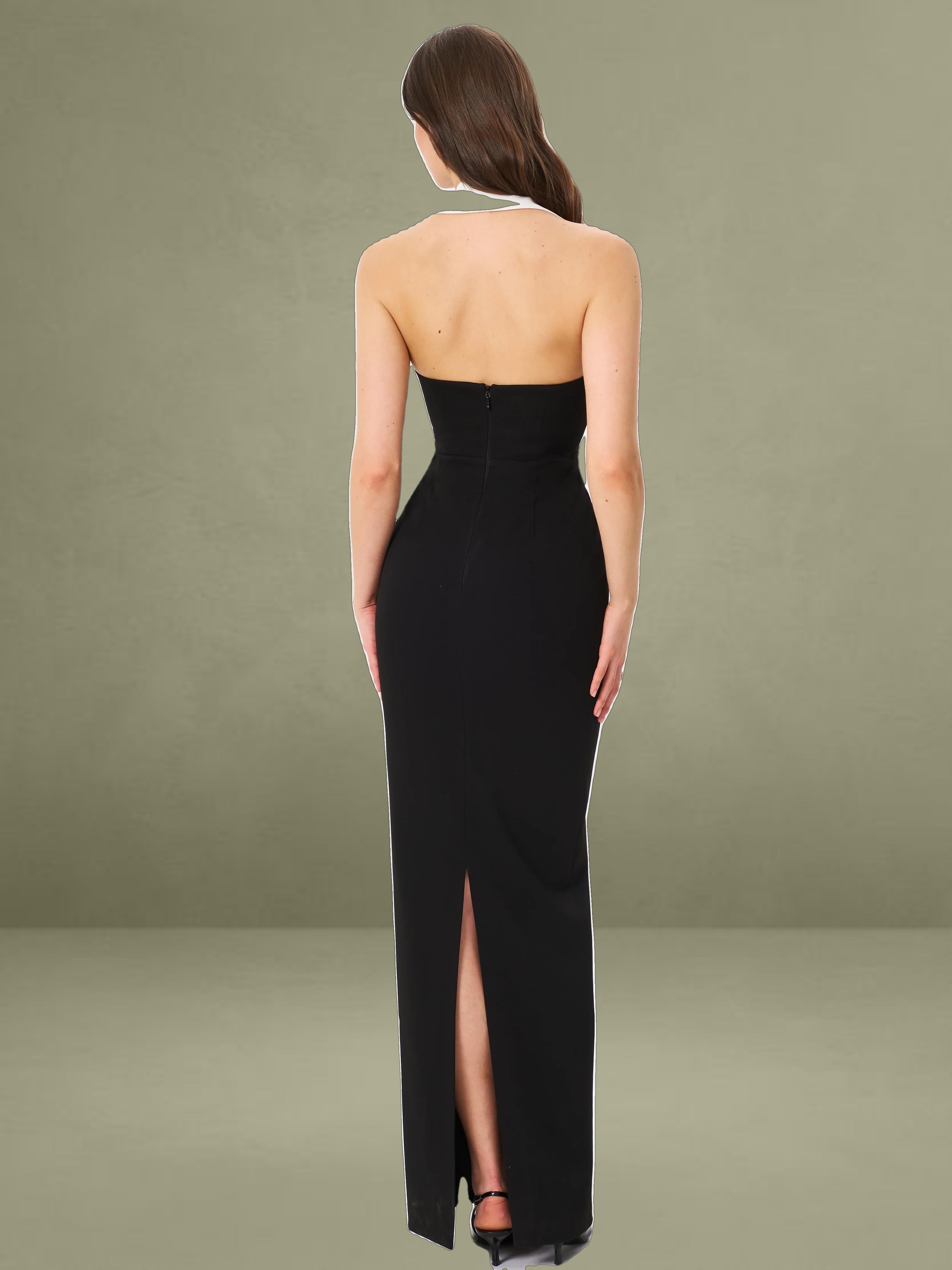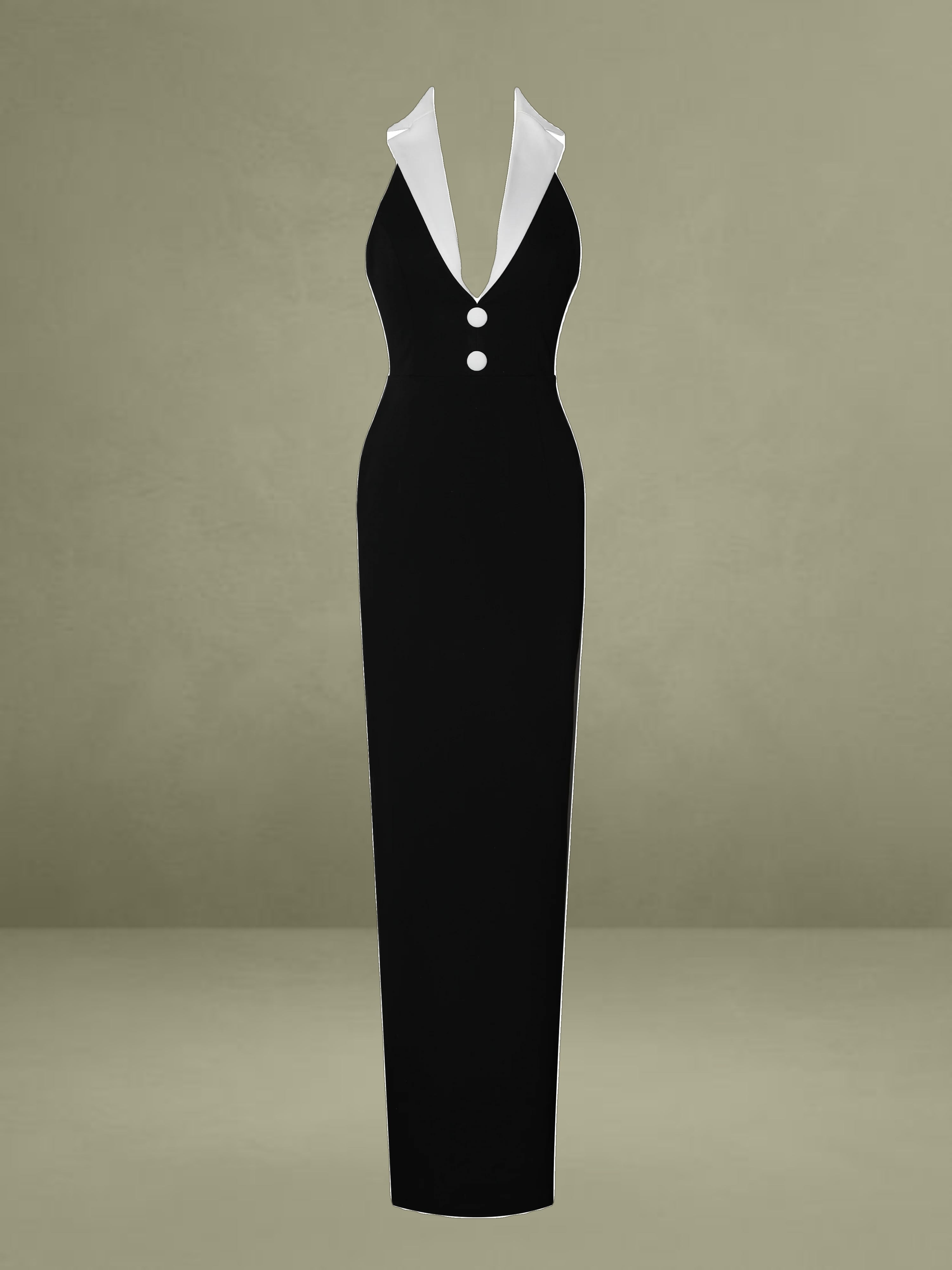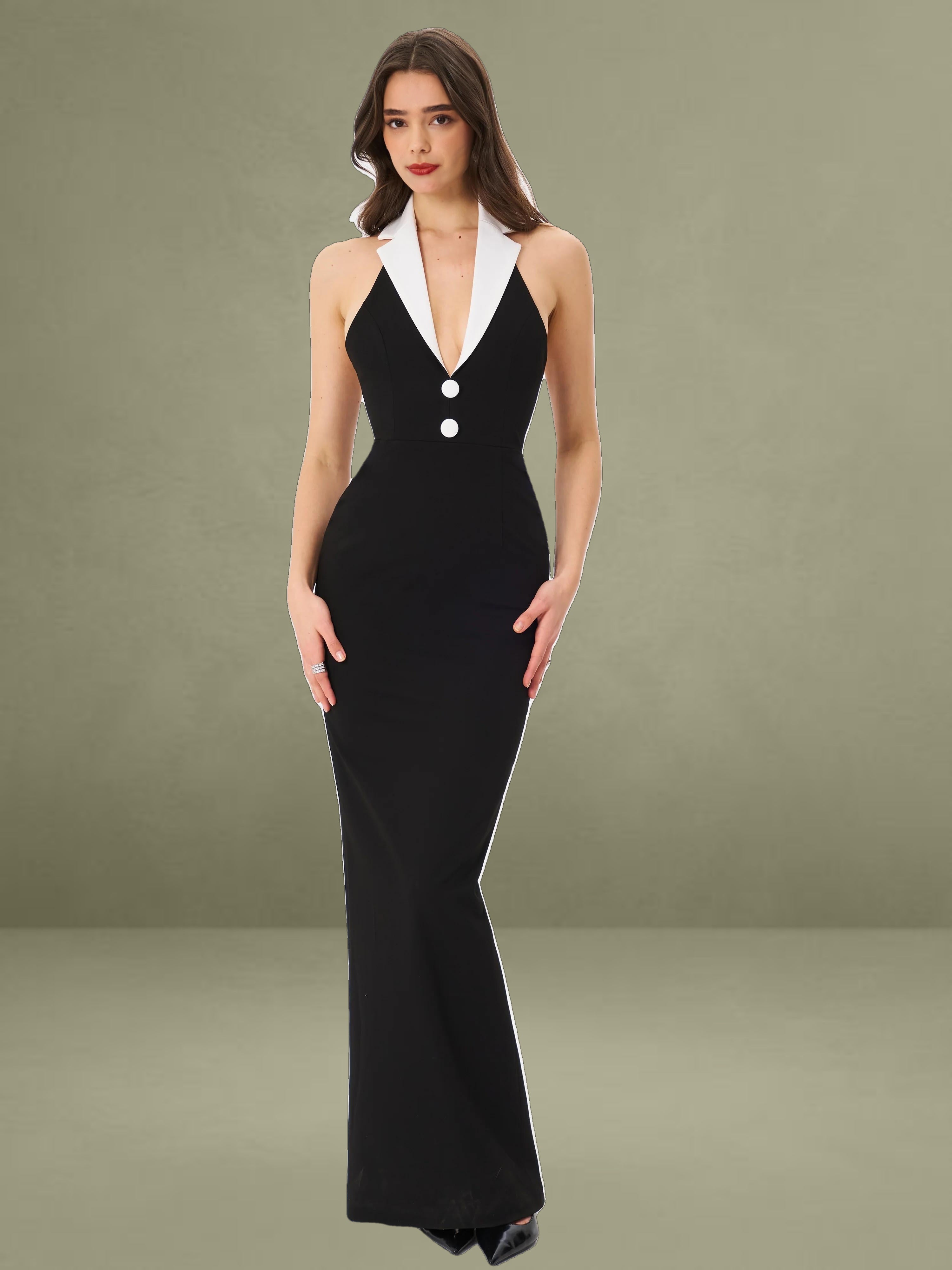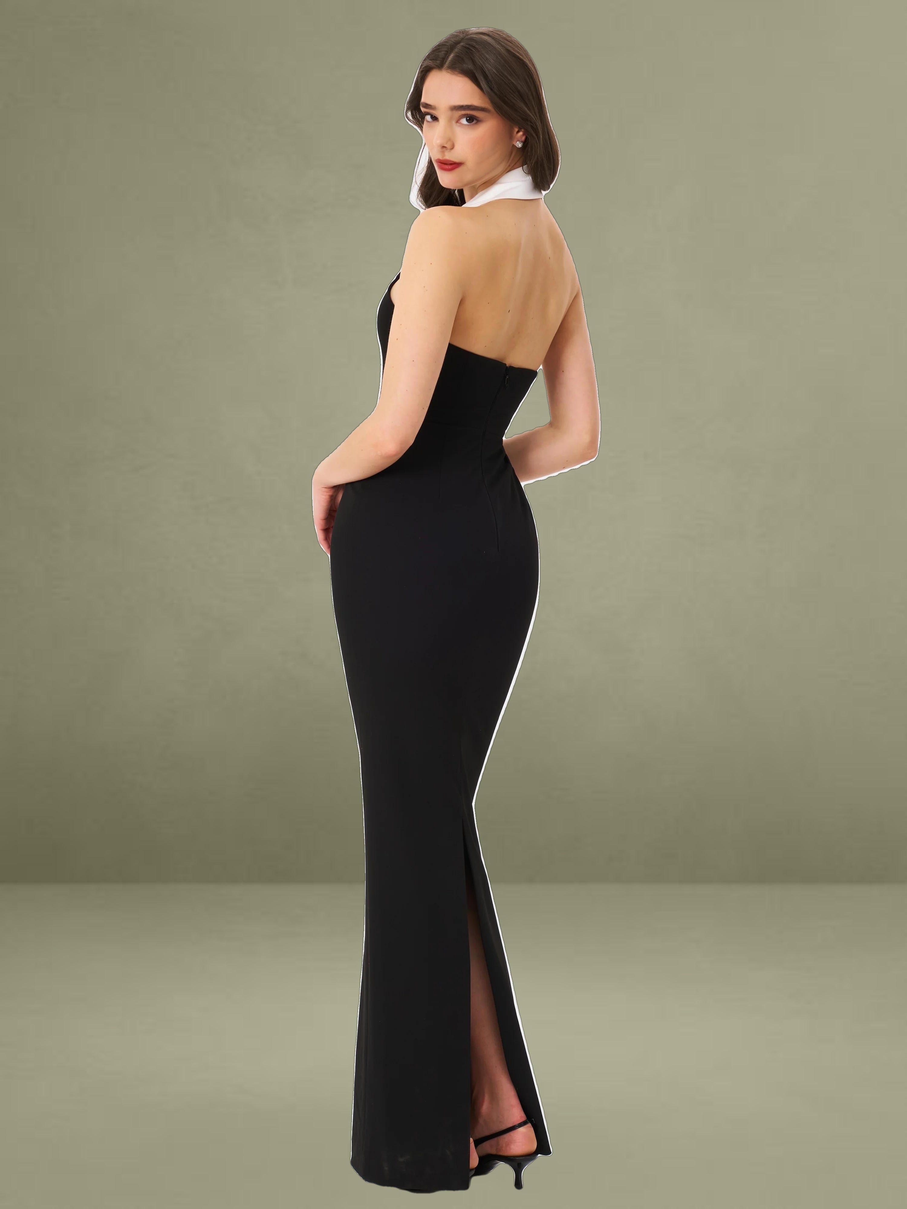 The Raelyn Dress blends business casual sophistication with a vintage-inspired charm, making it a timeless wardrobe essential. Designed in a classic black and white combo, this dress features a crisp white collar and an elegant halter neckline, exuding refined elegance. The high-waist design and slim fit silhouette enhance your curves, while the bodycon cut ensures a sleek and polished look. A back slit allows for effortless movement, and the invisible zipper provides a seamless finish. Whether for office wear or an upscale event, the Raelyn Dress is the perfect balance of power and poise.