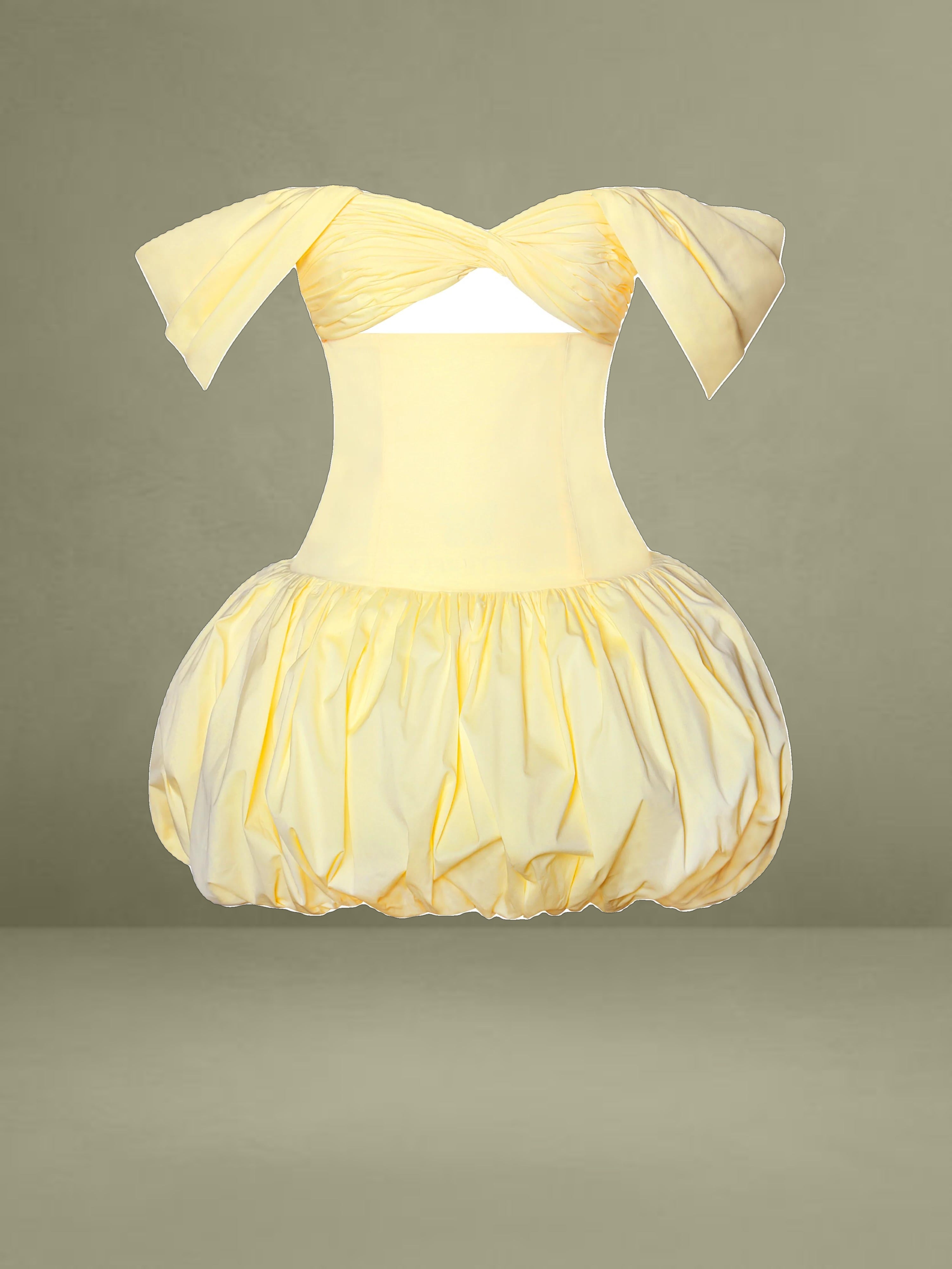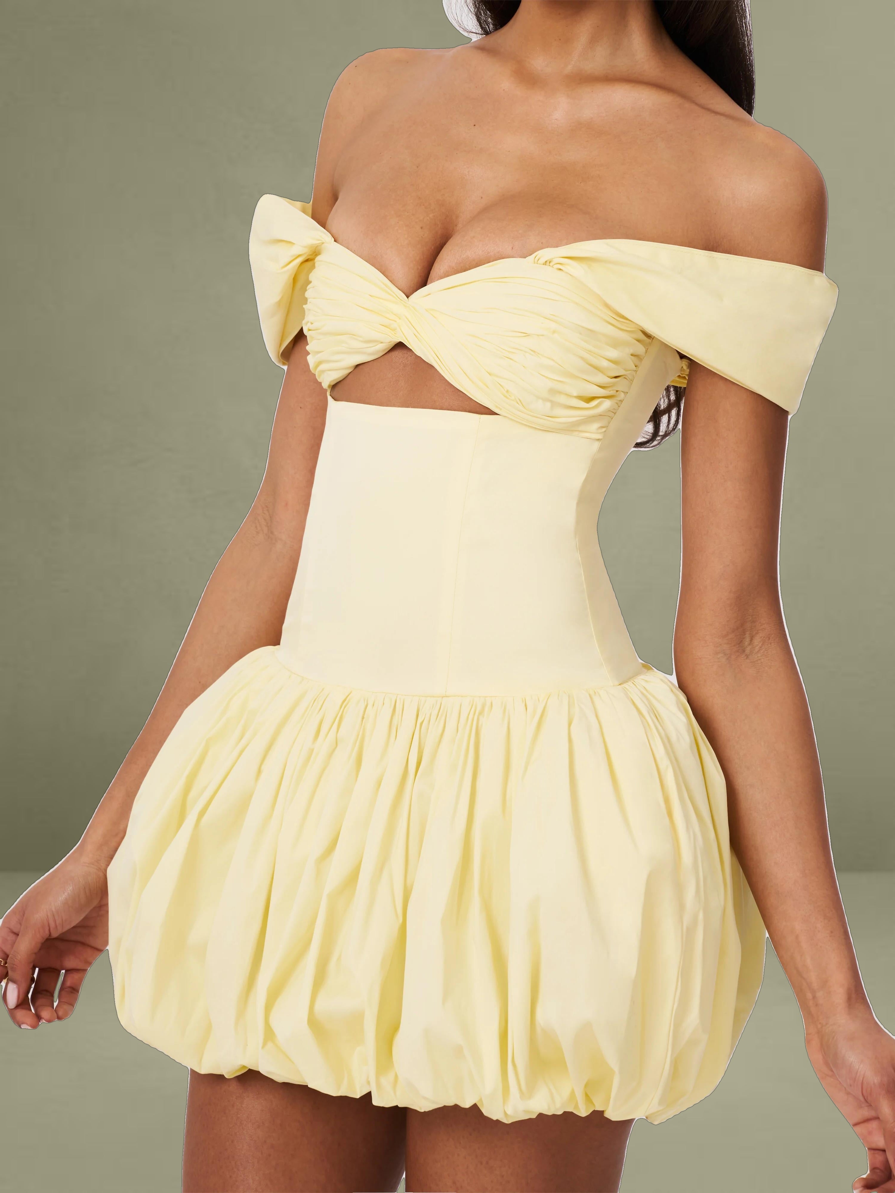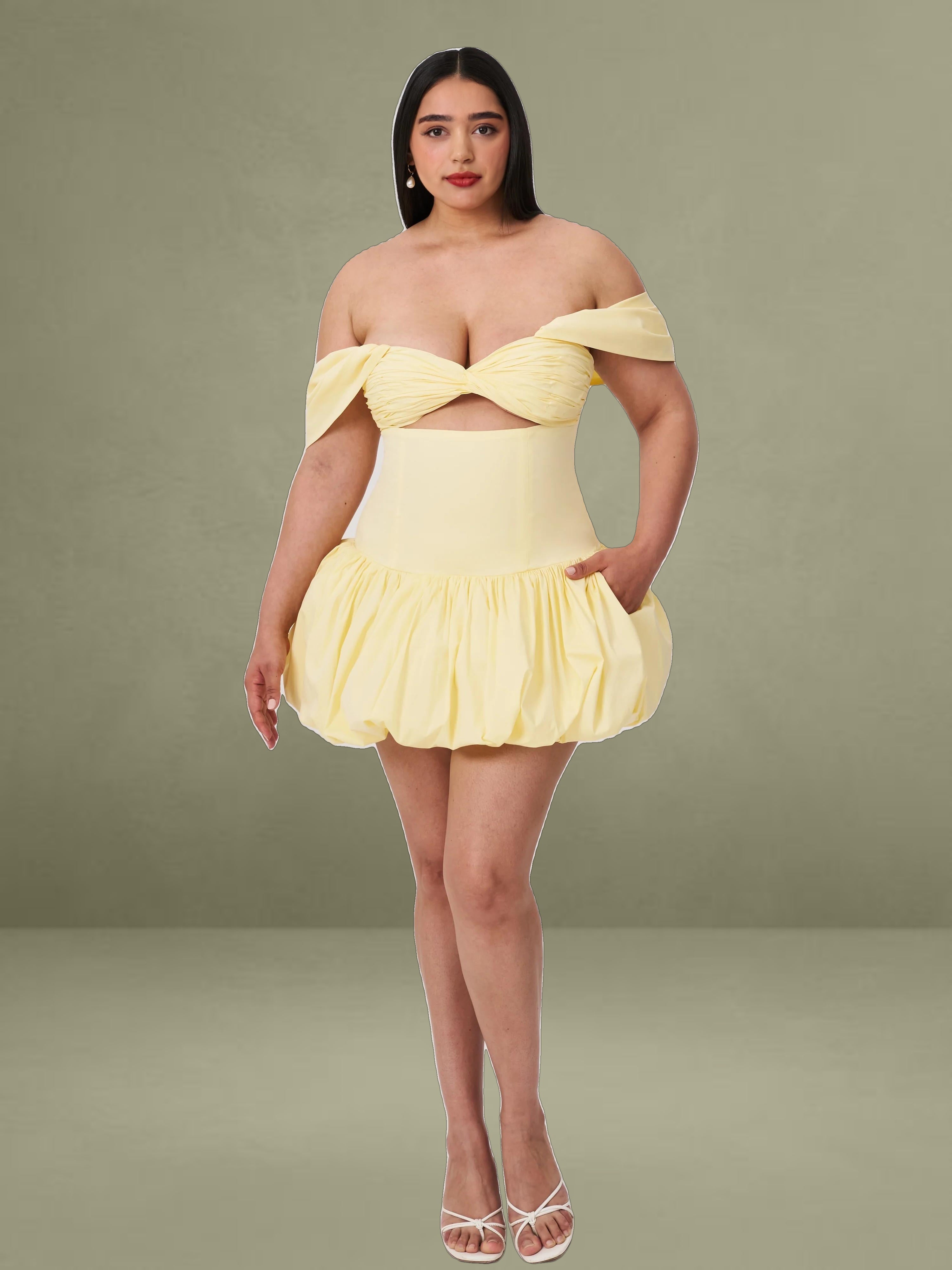 Step into timeless elegance with our Umika dress, a captivating blend of classic charm and modern flair. This off-shoulder mini dress features a drop waist and a unique bubble hem, elevating your style with every step. The pleated cups offer a touch of sophistication, while built-in boning ensures a flattering silhouette. Practicality meets chic with convenient pockets and a fully lined design. Seamlessly slip into this dress with its invisible zipper, embracing both comfort and style effortlessly. Perfect for any occasion, it's a versatile piece that will leave a lasting impression. It is also available in White and Black.