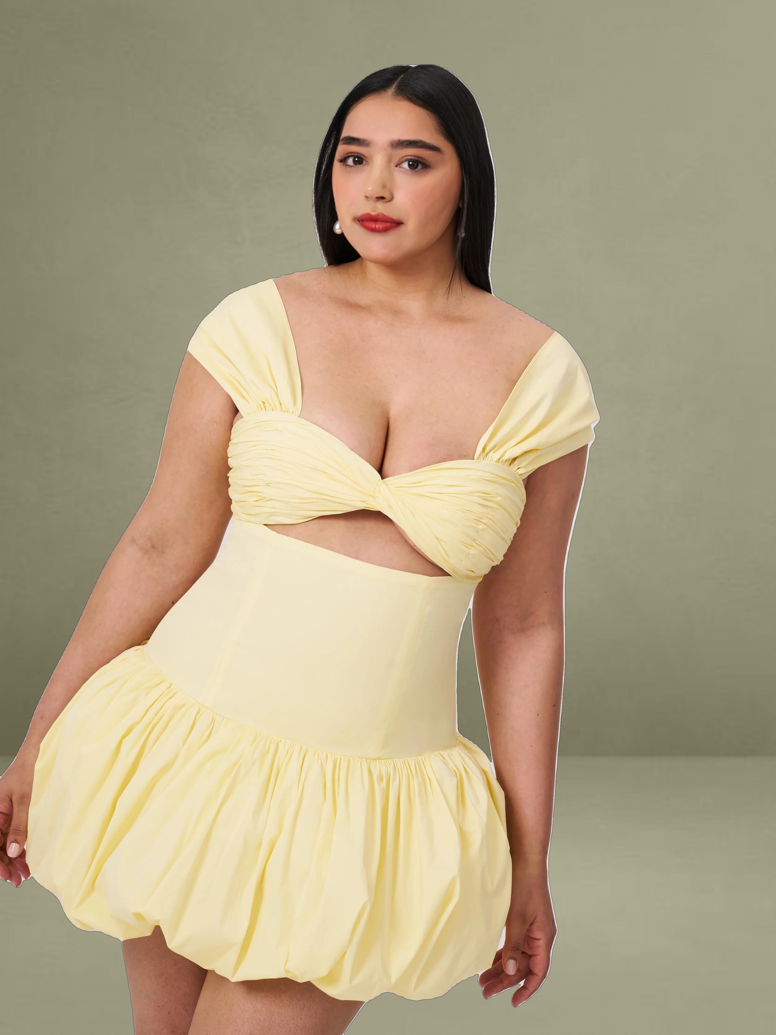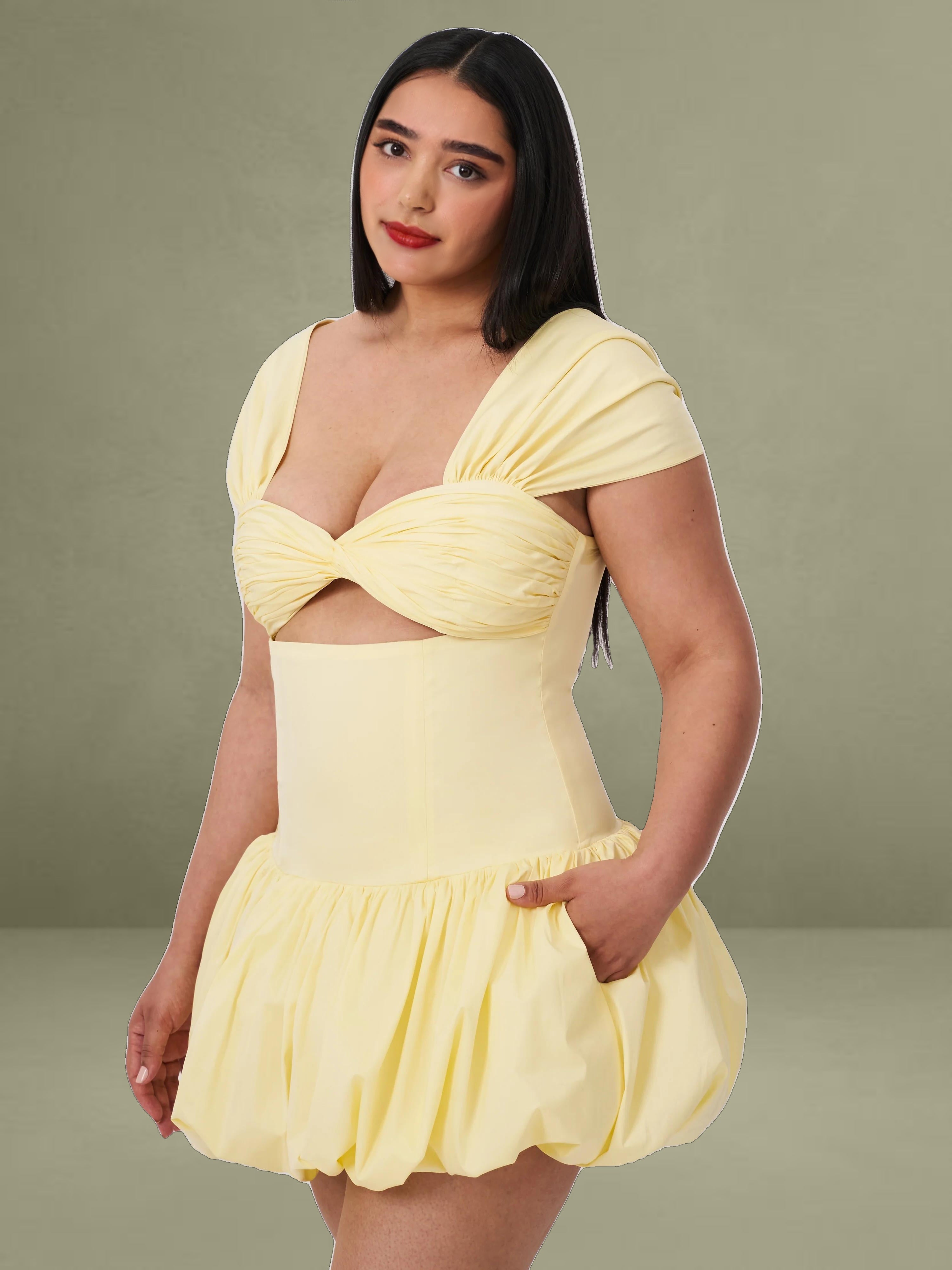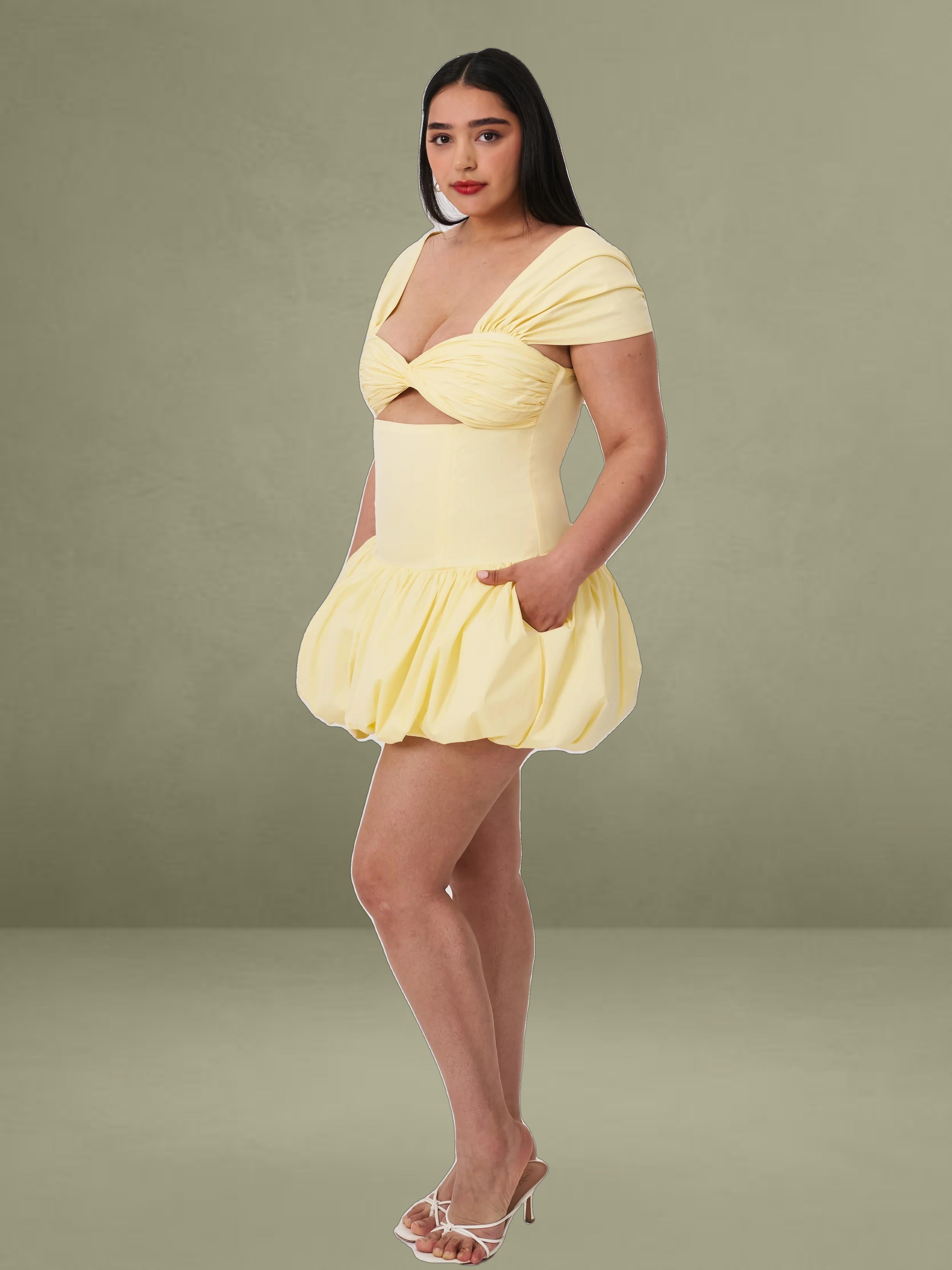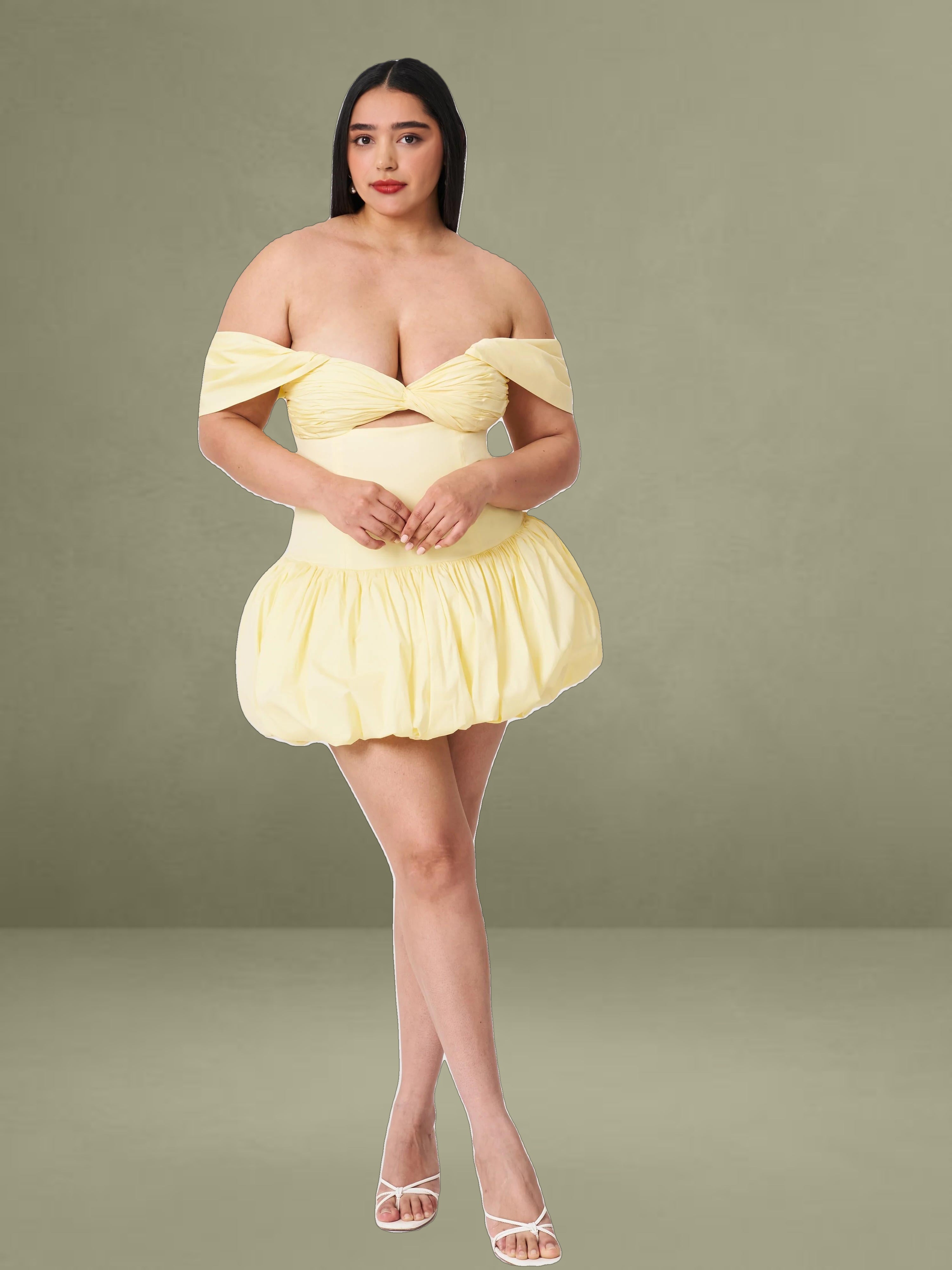 Step into timeless elegance with our Umika dress, a captivating blend of classic charm and modern flair. This off-shoulder mini dress features a drop waist and a unique bubble hem, elevating your style with every step. The pleated cups offer a touch of sophistication, while built-in boning ensures a flattering silhouette. Practicality meets chic with convenient pockets and a fully lined design. Seamlessly slip into this dress with its invisible zipper, embracing both comfort and style effortlessly. Perfect for any occasion, it's a versatile piece that will leave a lasting impression. It is also available in White and Black.