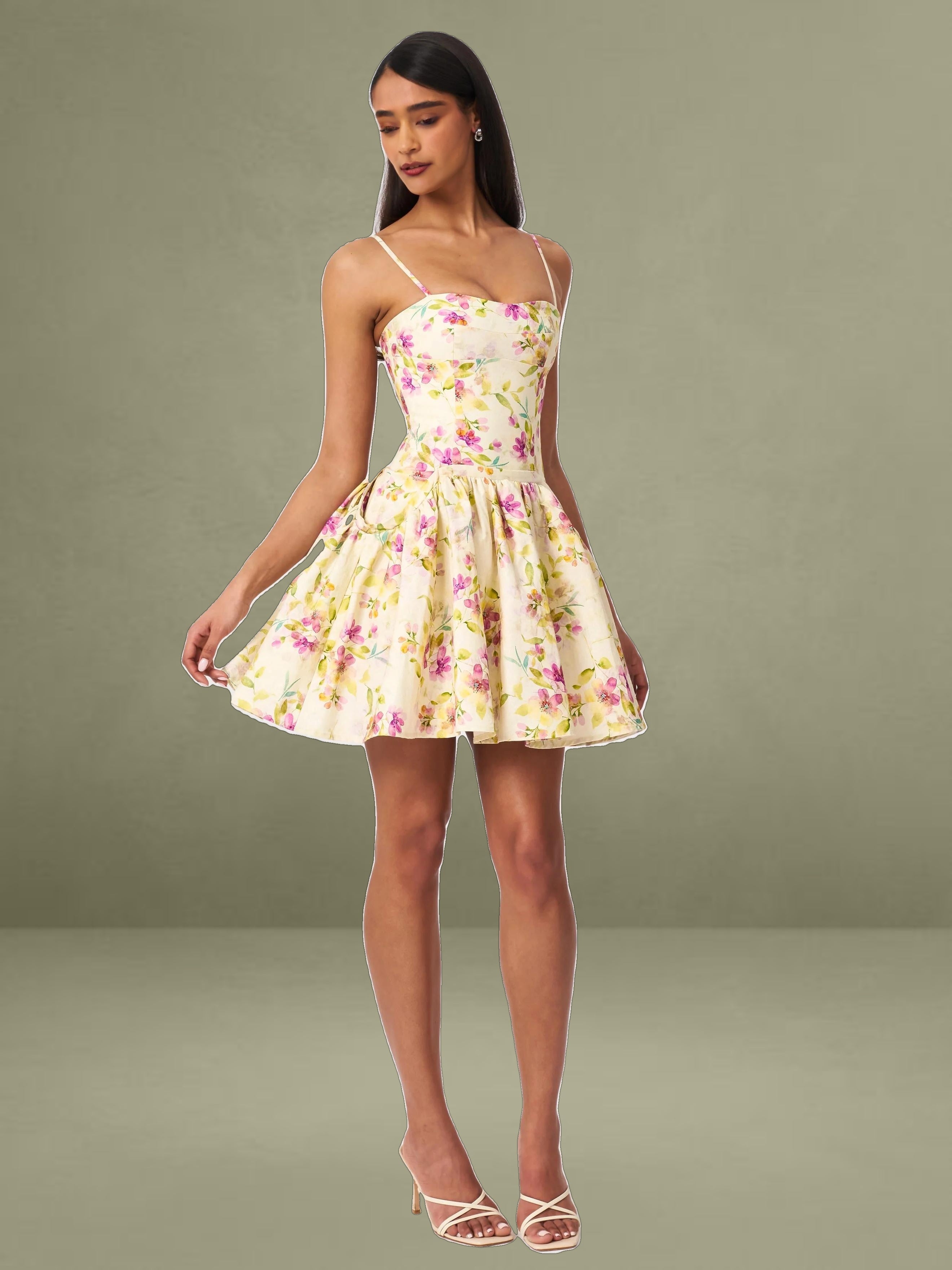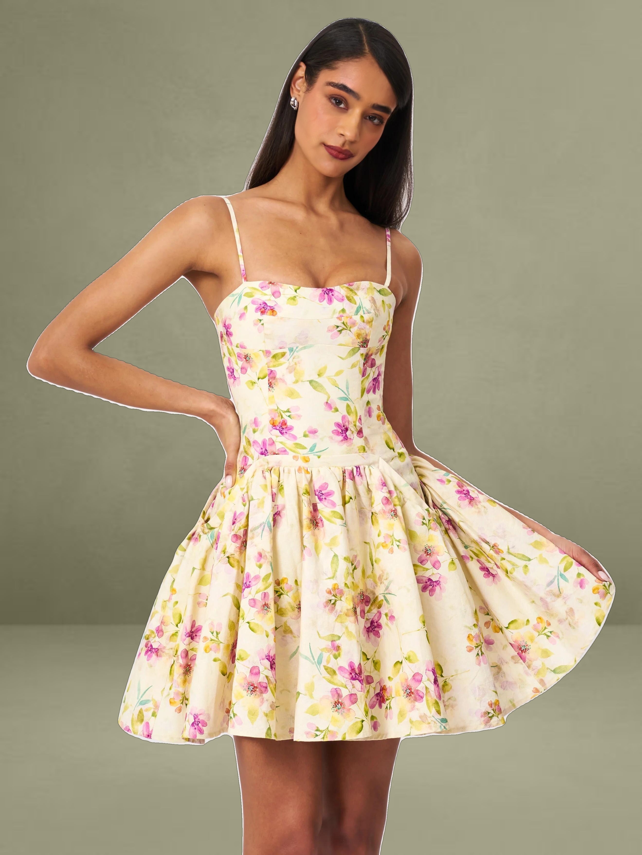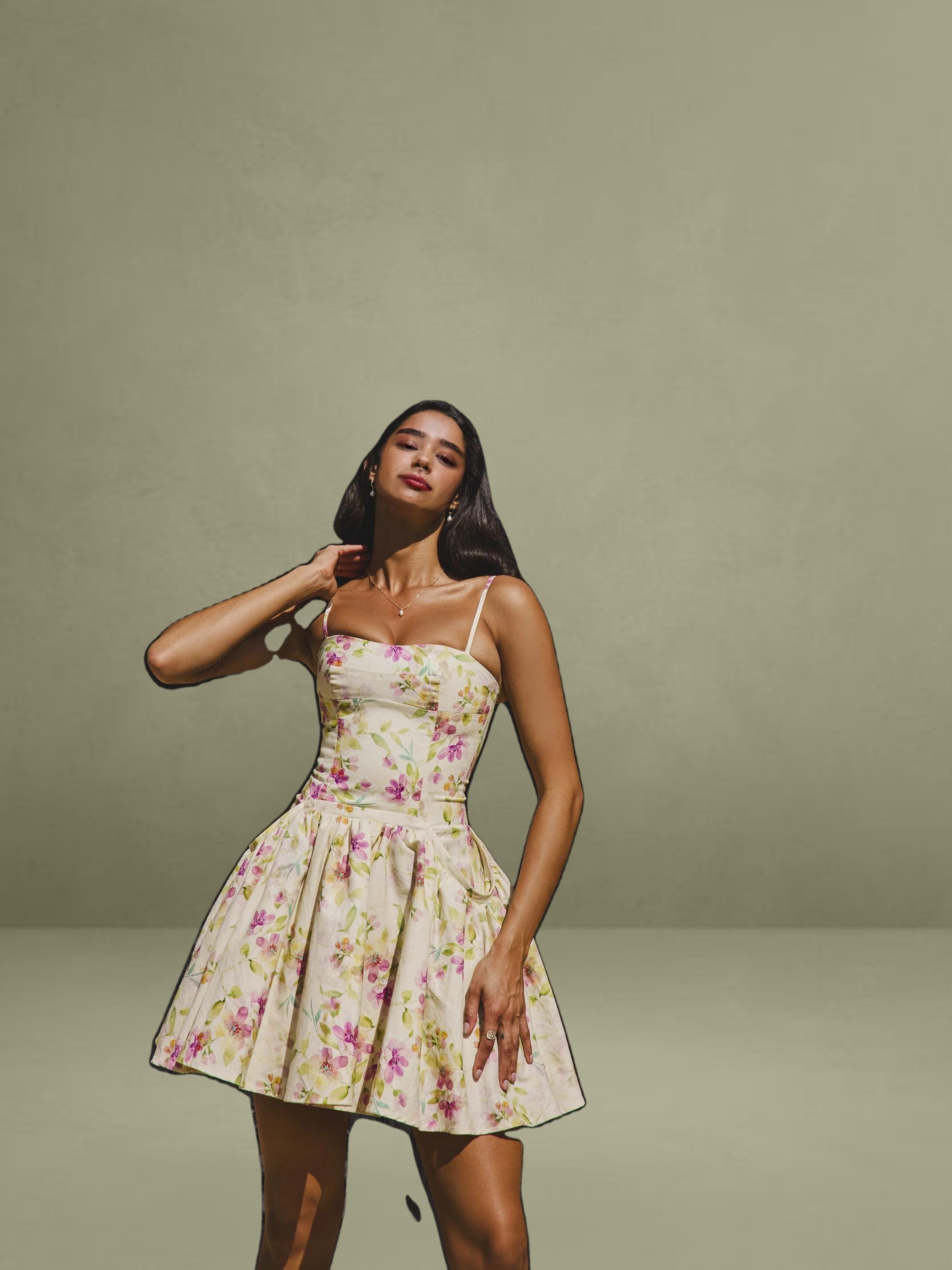 The Valda Dress is a charming spring essential, perfect for picnics, vacations, holidays, and casual outings. Crafted from breathable linen fabric, it features a yellow base with a delicate pink floral print, exuding warmth and femininity. The pleated skirt adds graceful movement, while the big pockets bring both style and practicality. Designed for a customizable fit, the dress includes adjustable straps and an invisible zipper for a seamless look. Light, airy, and effortlessly elegant, the Valda Dress is a must-have for a breezy and romantic spring wardrobe.
